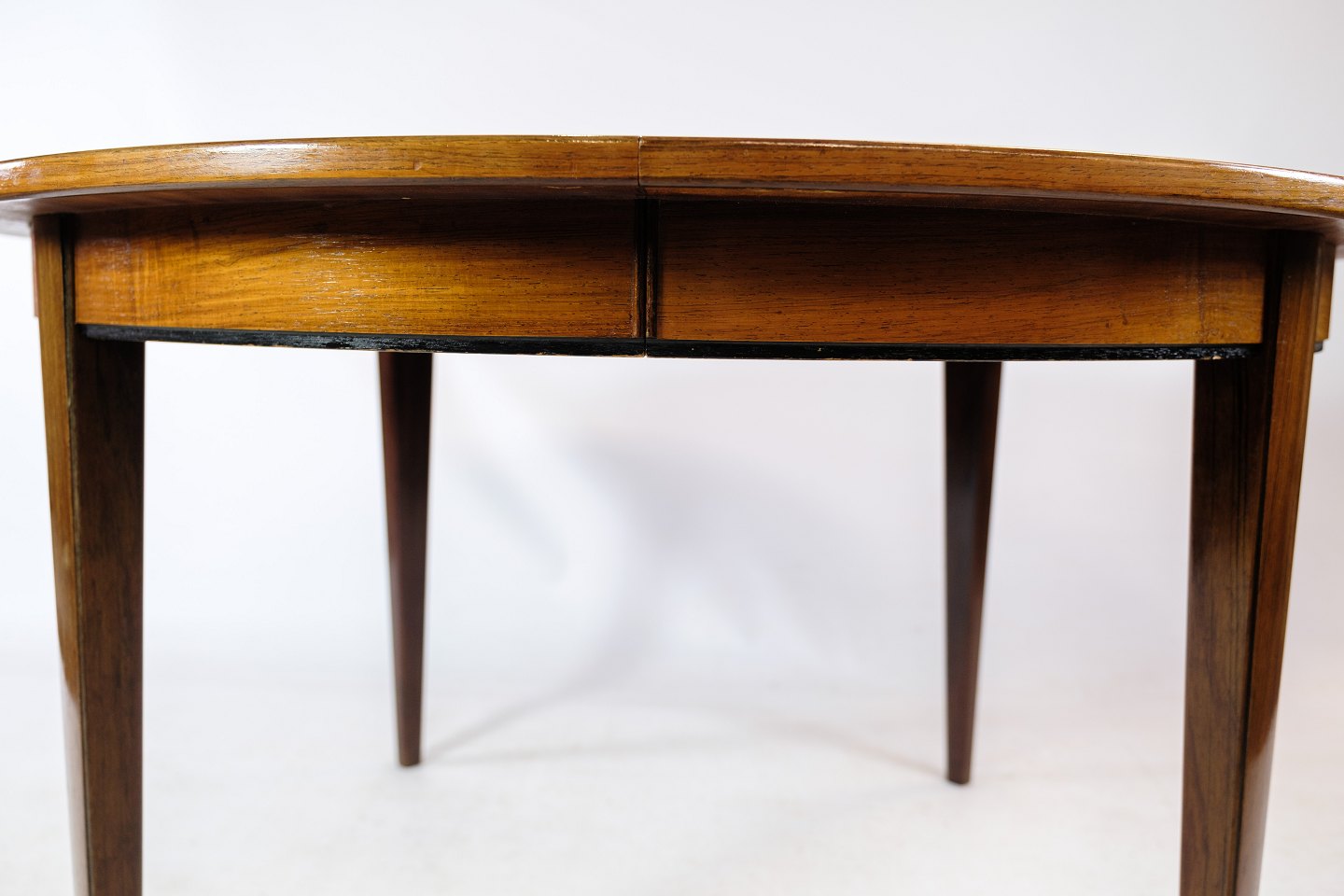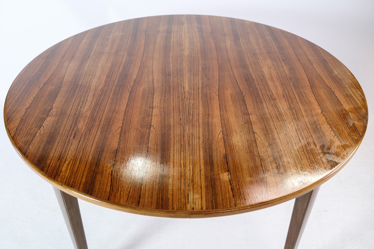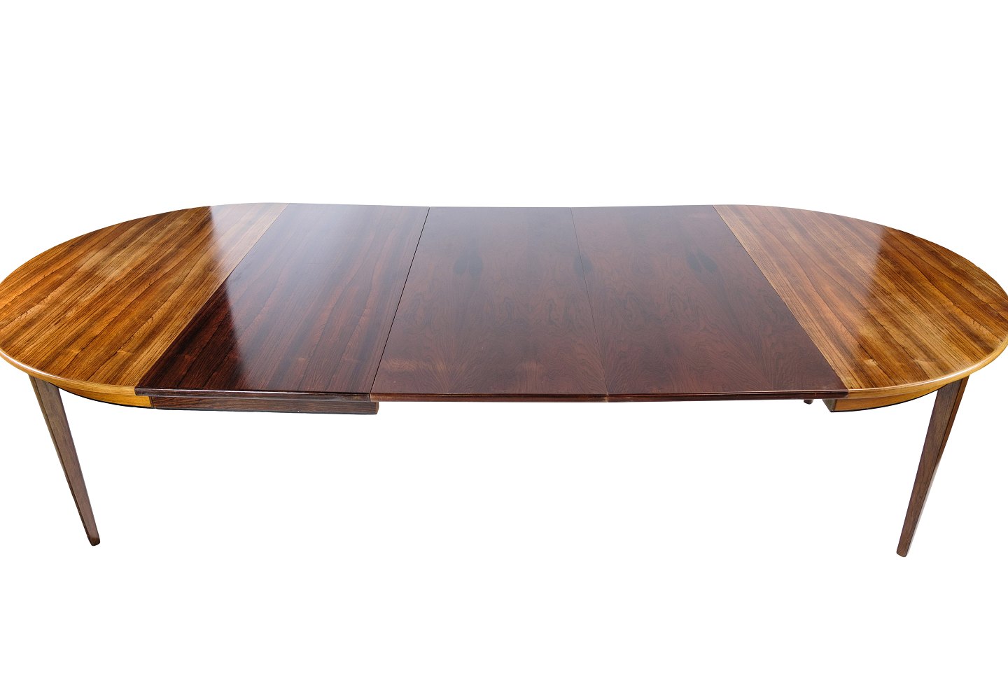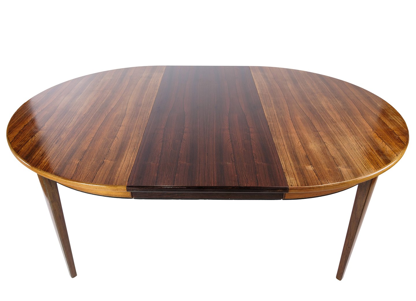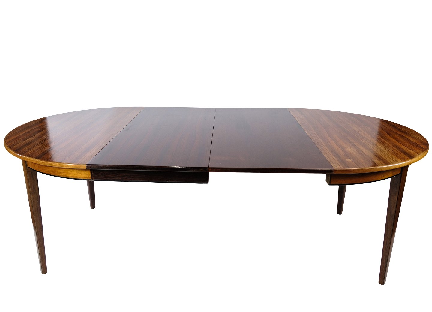 Spisebord, designet af Omann Junior i træsorten palisander fra omkring 1960'erne. Hvis det ønskes kan vi på vores professionelle værksted farve tillægspladerne ens farve.