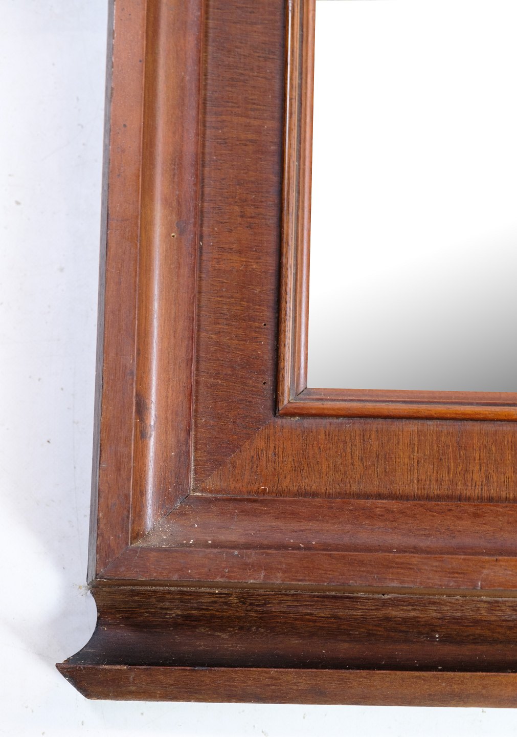 Spejl af hånd poleret mahogni, med udskæringer, lavet i Danmark fra omkring 1880'erne