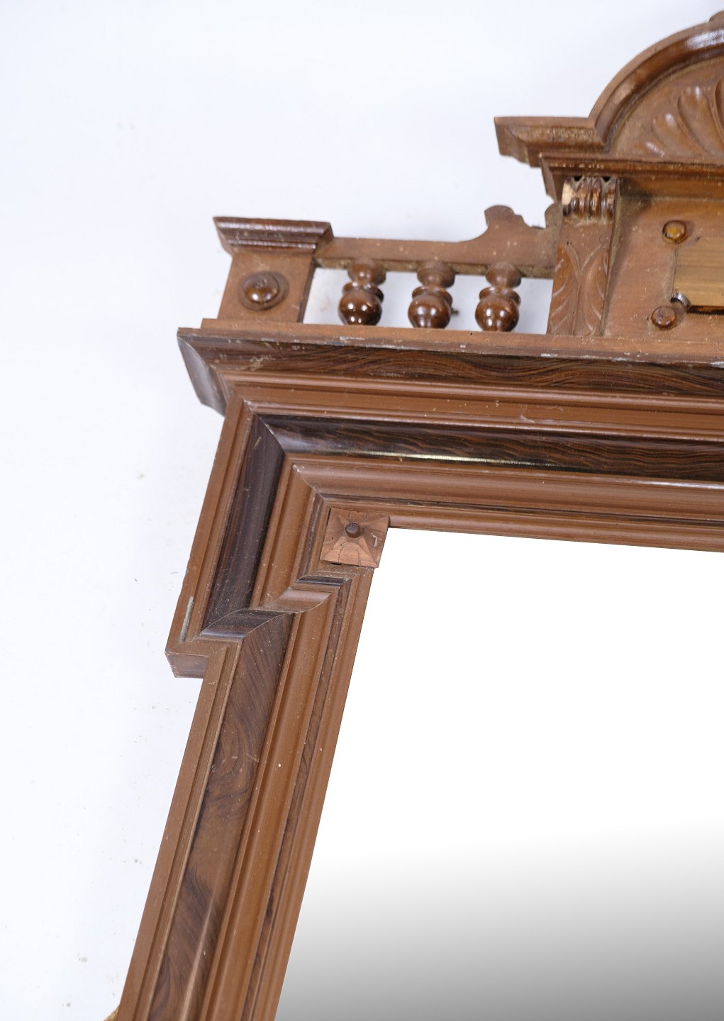Mirror of hand-polished mahogany, with carvings, made in Denmark from around the 1880s