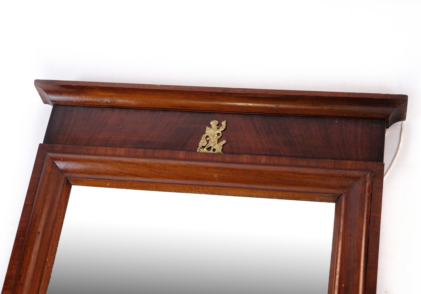 Spejl af hånd poleret mahogni, med messing dekoration, lavet i Danmark fra omkring 1880'erne