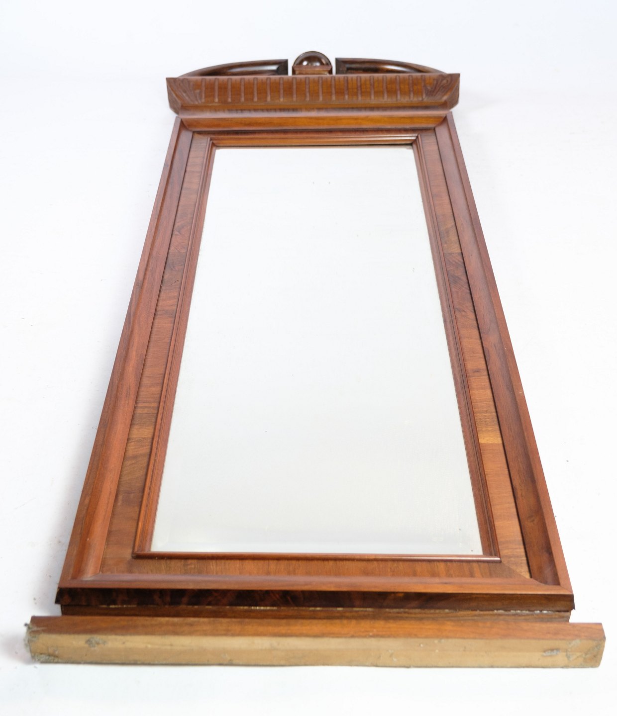 Mirror of hand-polished mahogany, with carvings, made in Denmark from around the 1880s