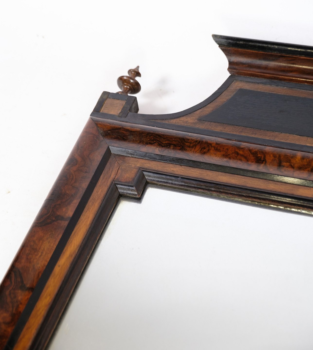 SoldMirror of hand-polished mahogany, with carvings, made in Denmark from around the 1880s
