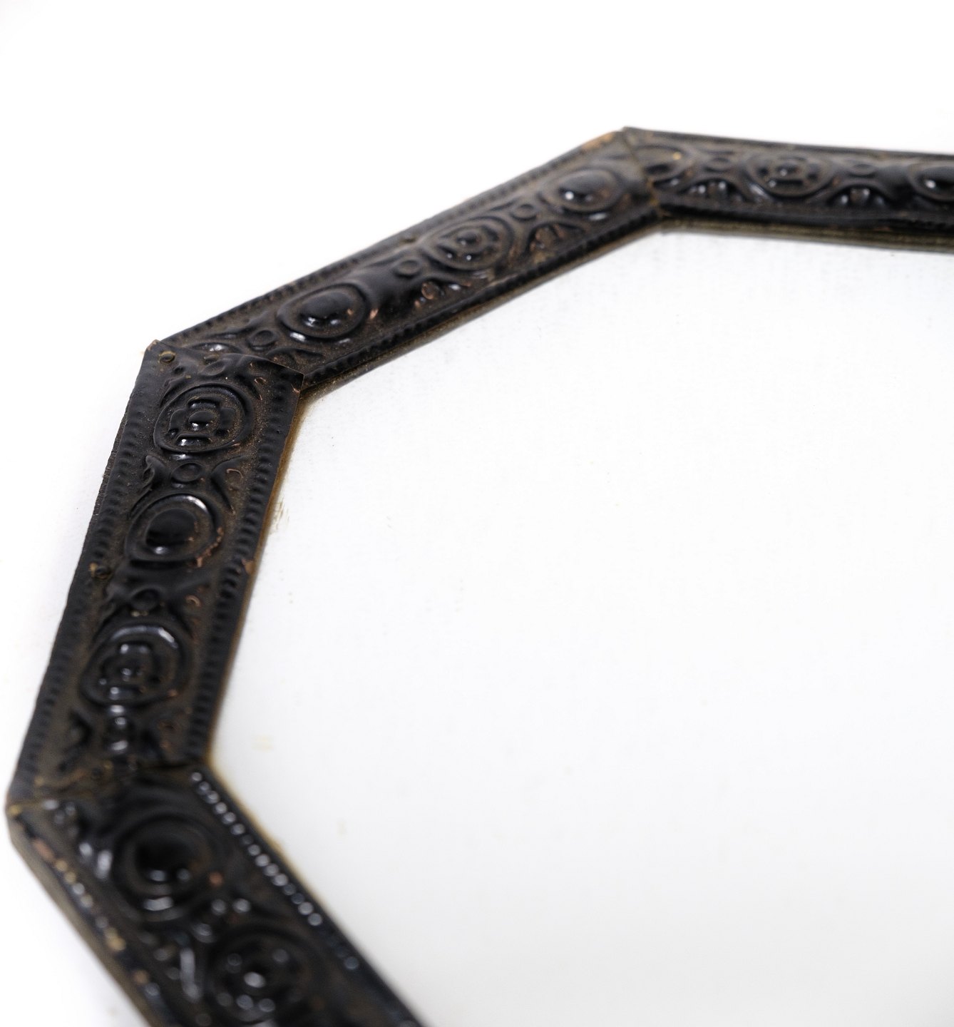 Antikt spejl i mørkt træ fra omkring år 1890'erne.