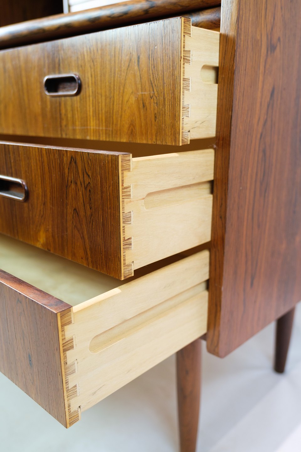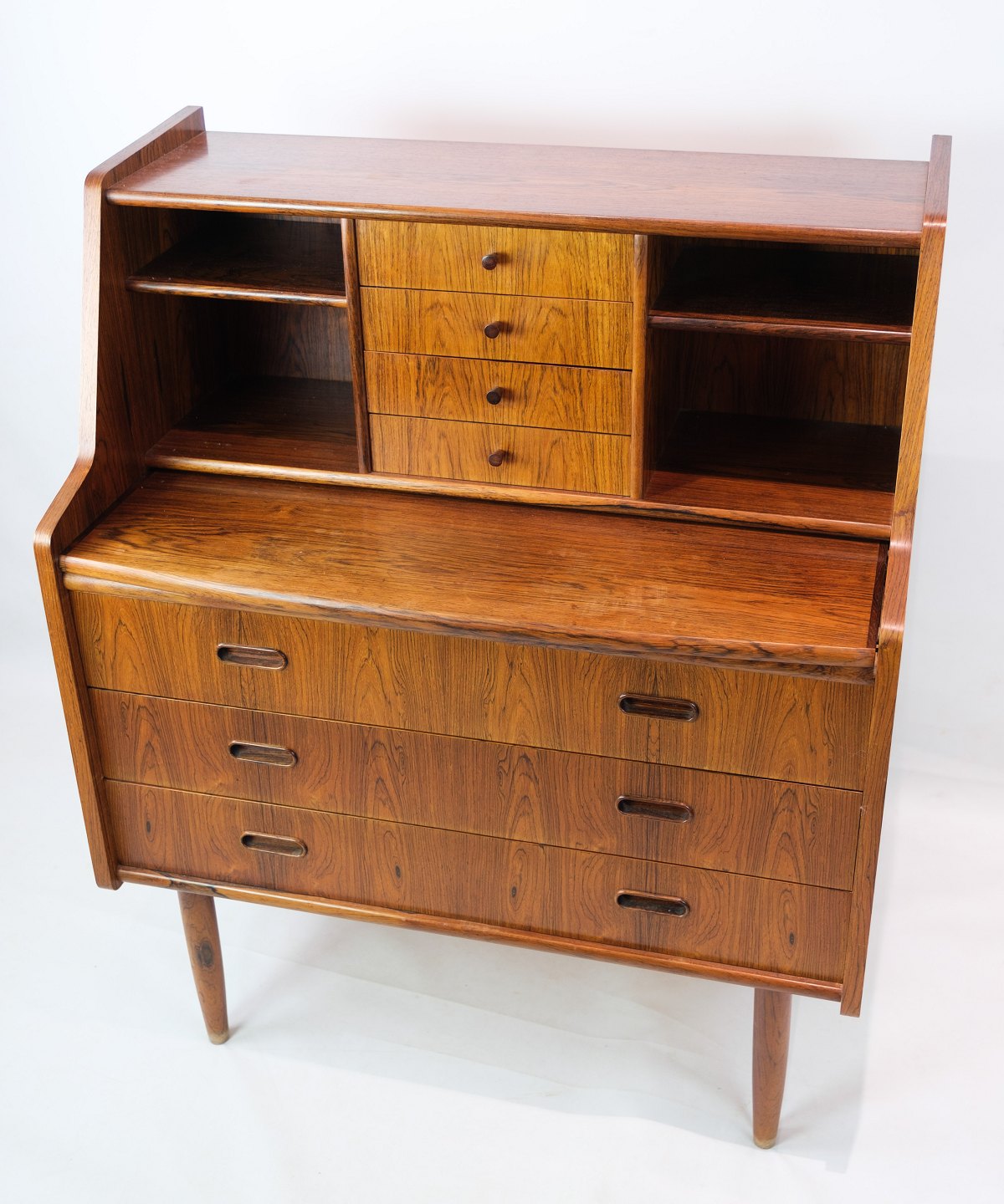 SoldSmall chatol in rosewood of Danish design from around the 1960s. Looks incredibly nice in the stand with 3 drawers at the bottom and 4 drawers at the top with shelves on each side. In addition to this, the chartolette has a pull-out.
