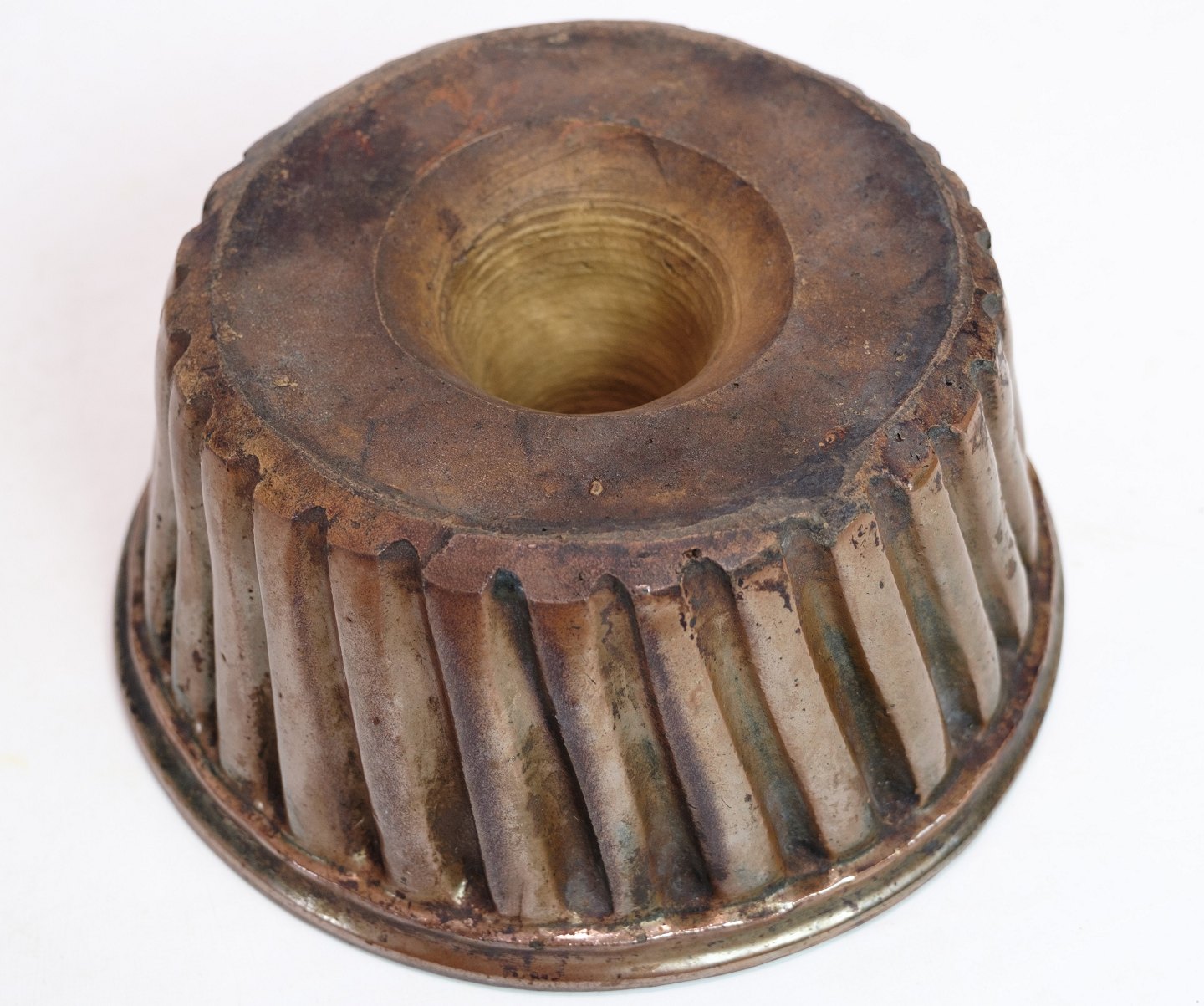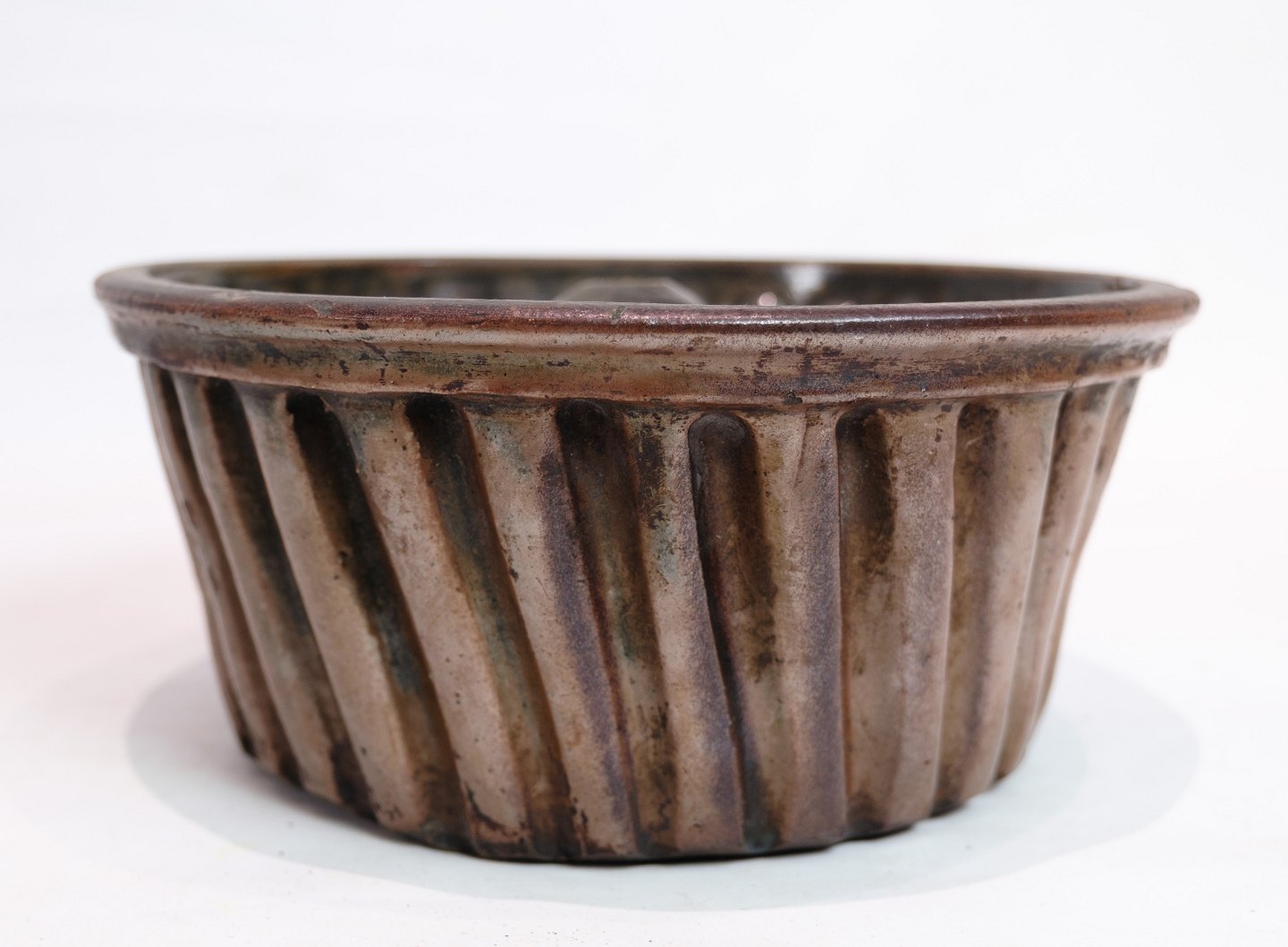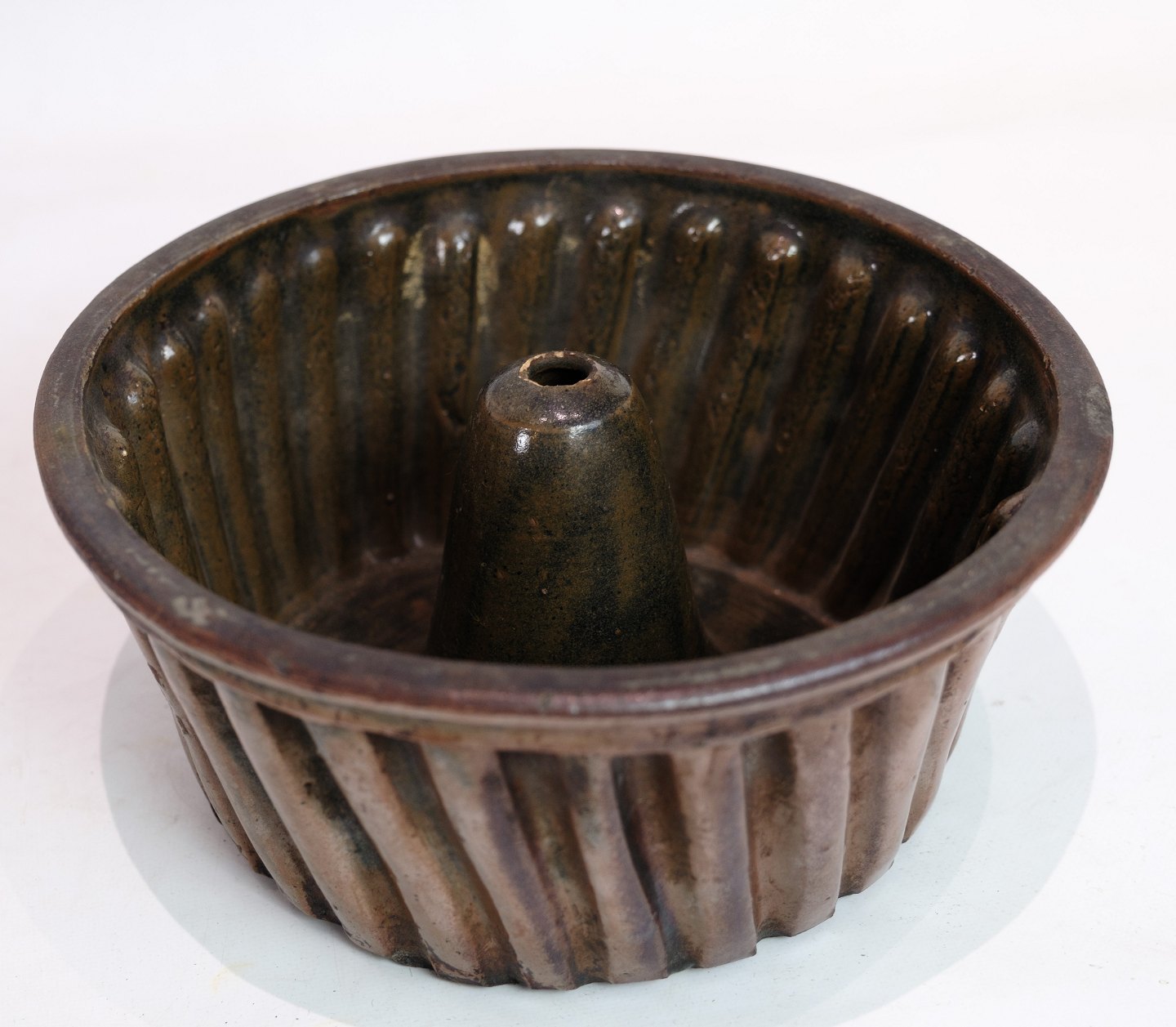 Buddingeform af lertøj i brunlige farver fra omkring år 1930'erne