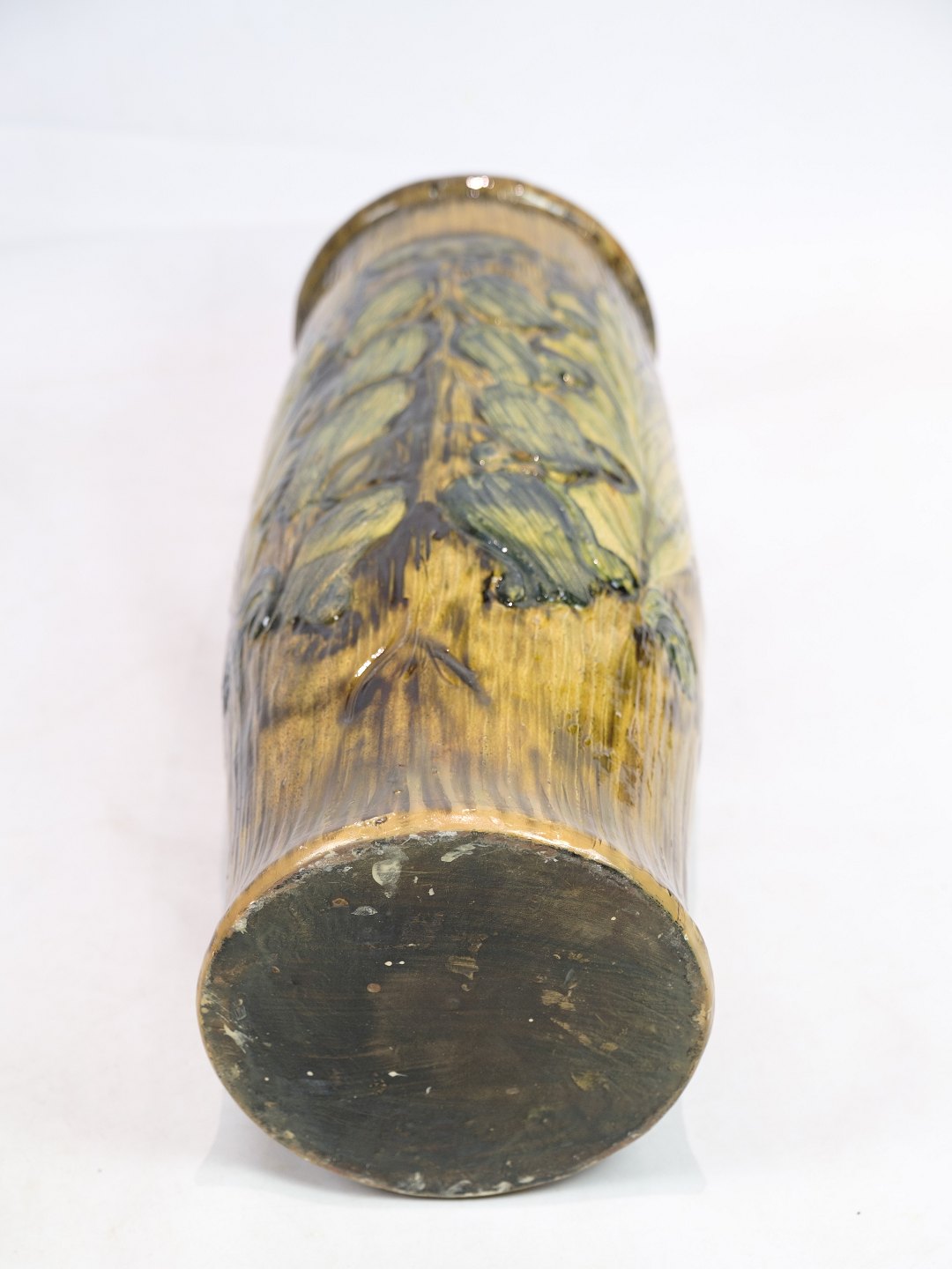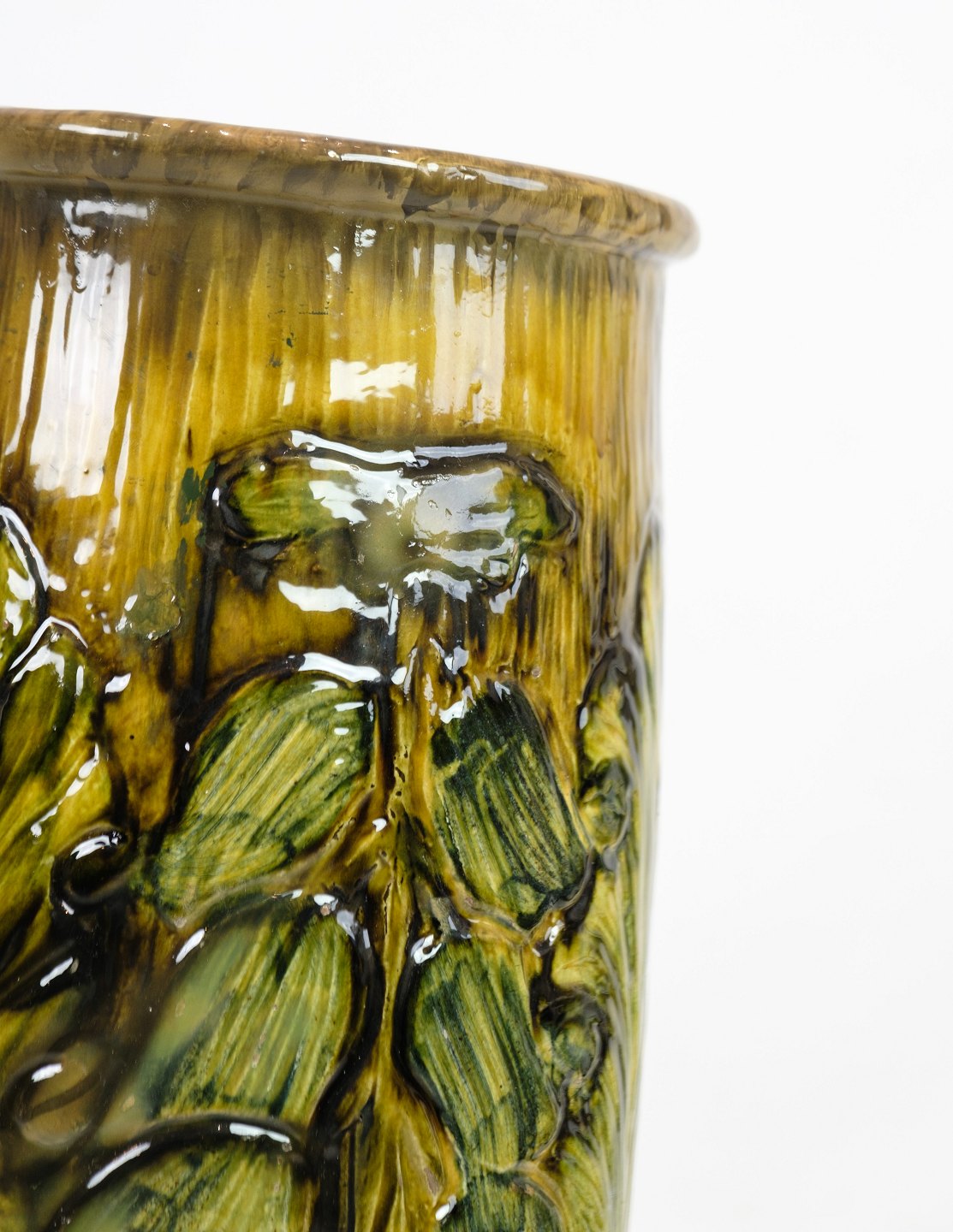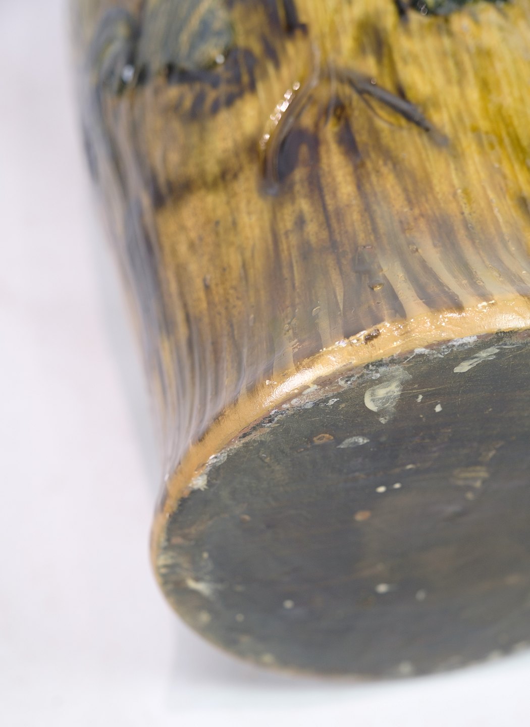 Denne store gulvvase i Danico keramik er et bemærkelsesværdigt stykke fra omkring 1960'erne. Vase, med sin blanding af gule og grønlige farver, udstråler en unik og livlig æstetik, der er karakteristisk for denne æra.