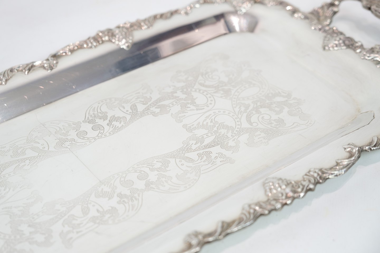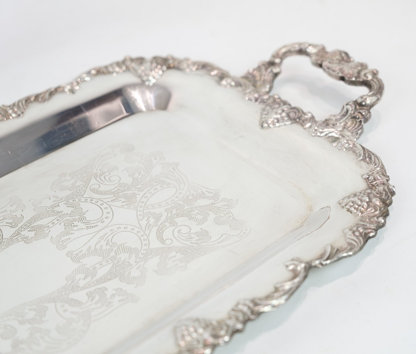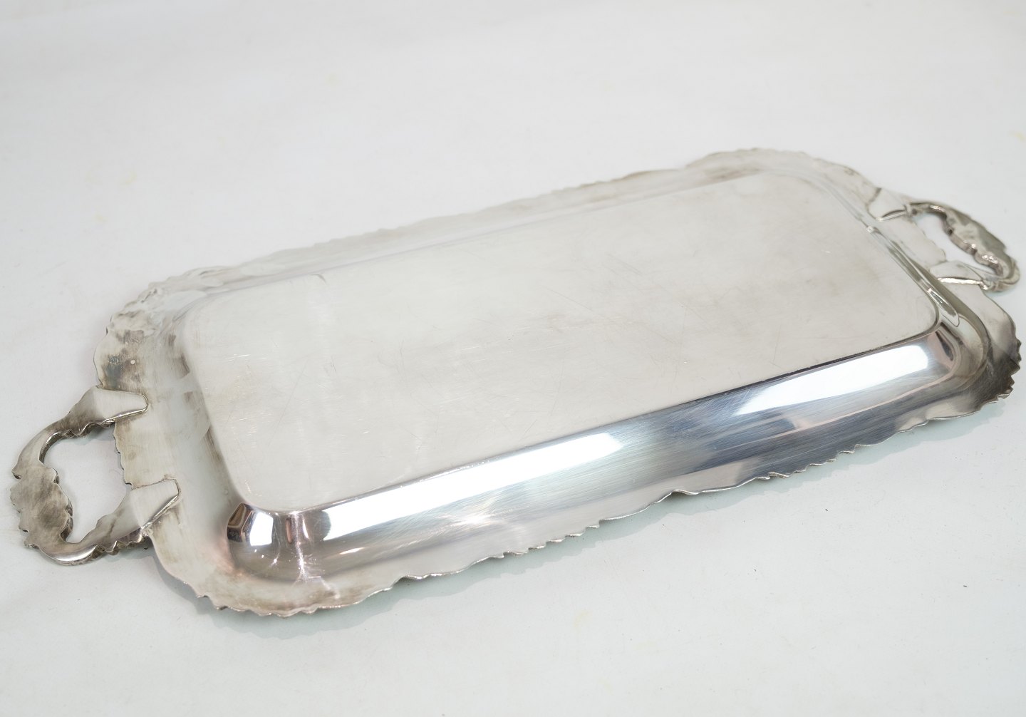 Aflangt fad i forsølvet messing fra omkring år 1930'erne.
