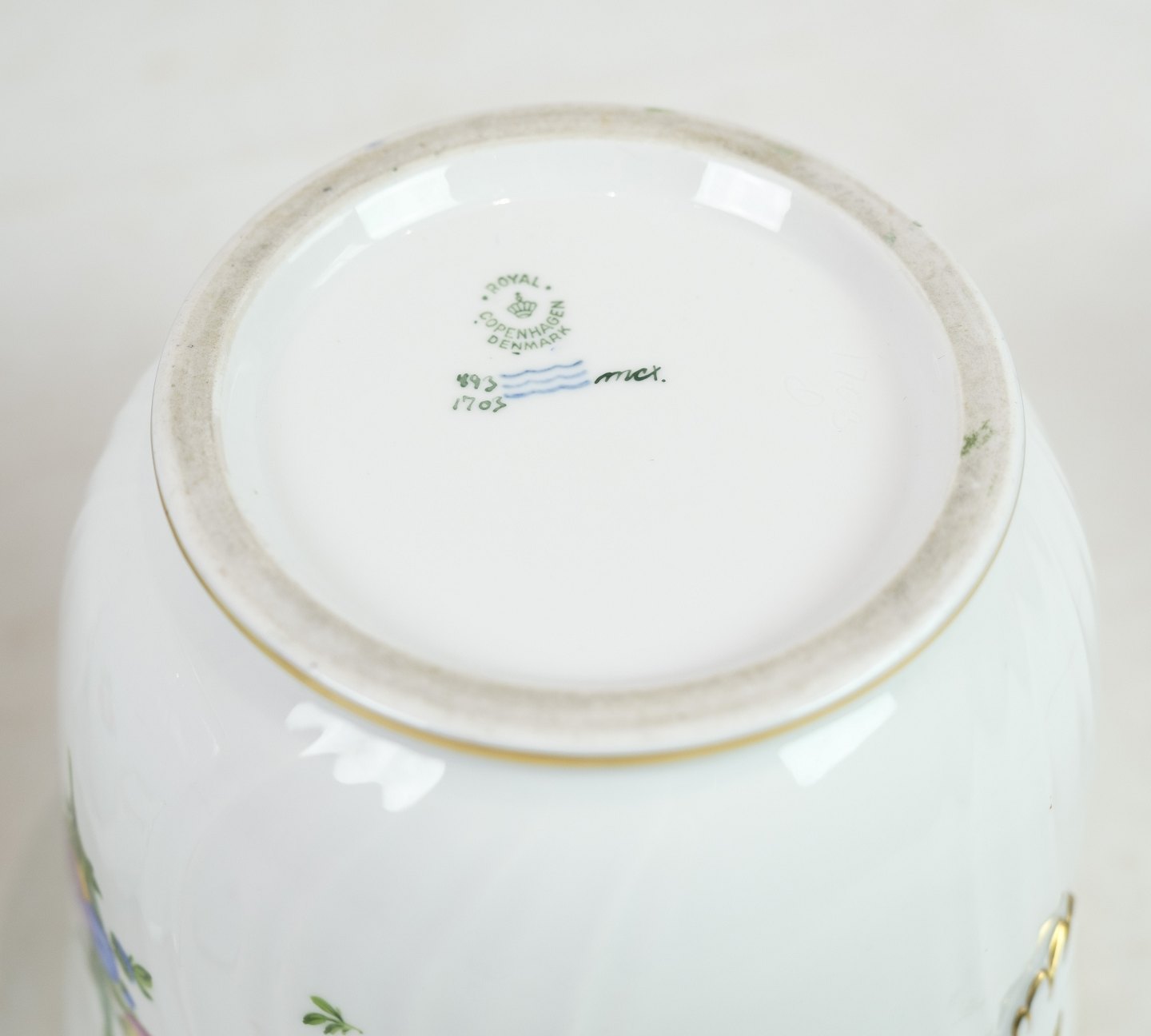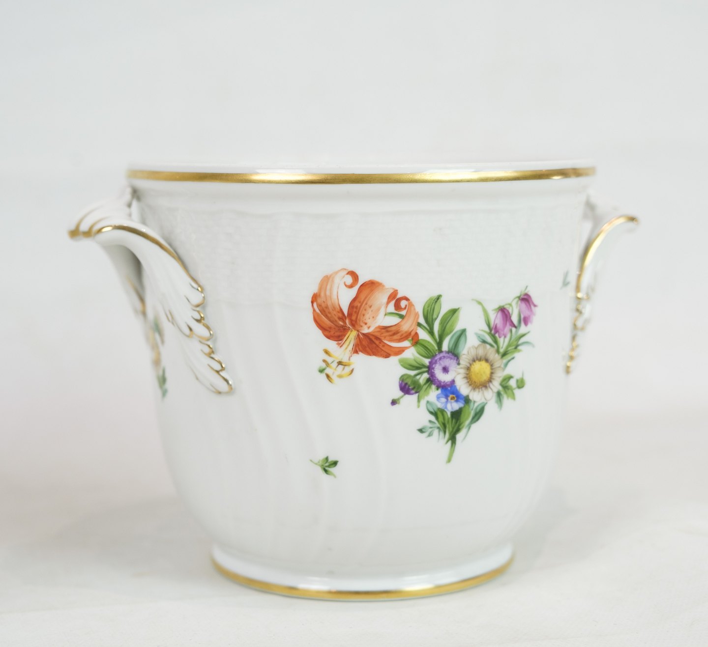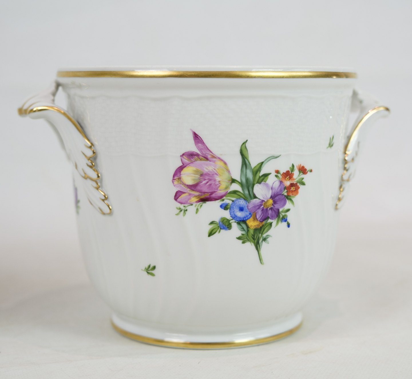 Royal Copenhagen champagne cooler in the Light Saxon Flower pattern from 1930. It can also be used as a flower pot and is in very fine condition. No. 493 / 1703.