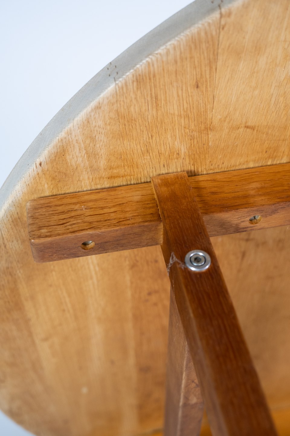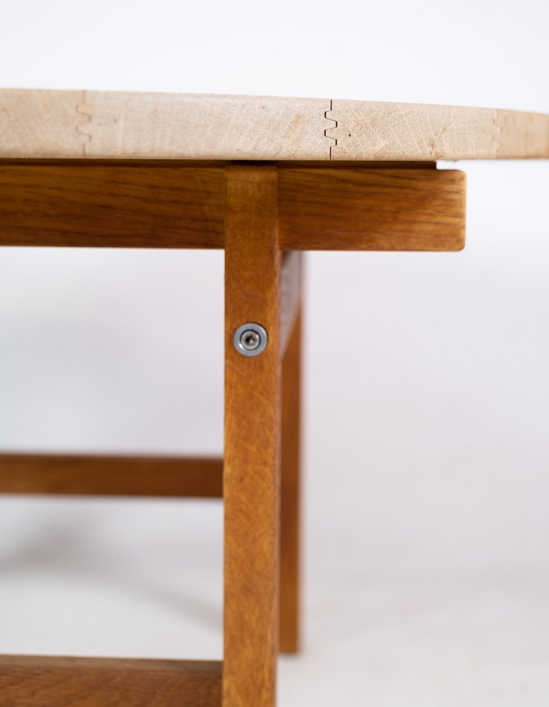 Round coffee table, designed by Hans J. Wegner (1914-2007) of solid oak manufactured by PP Møbler. The table is soap-treated but can also be oiled.