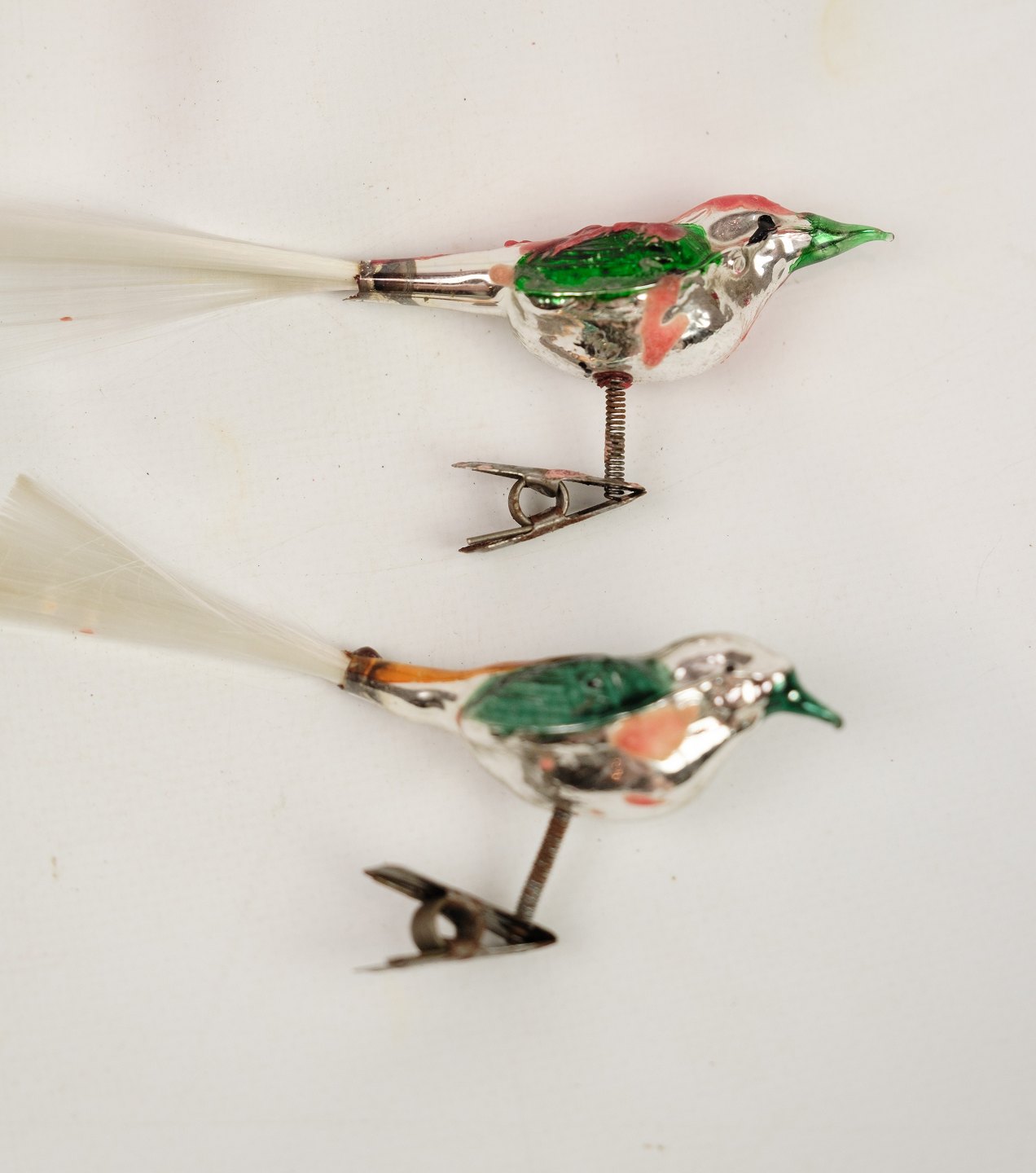 SolgtEt par håndmalet glas fugle fra omkring år 1930'erne. Gammelt julepynt i fin stand.