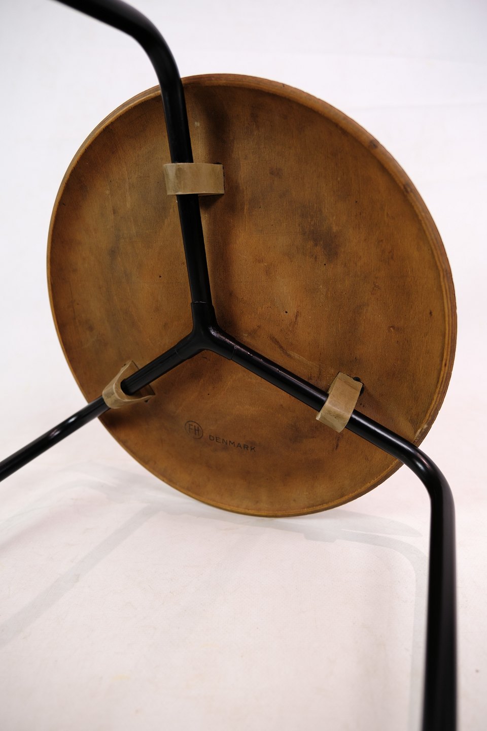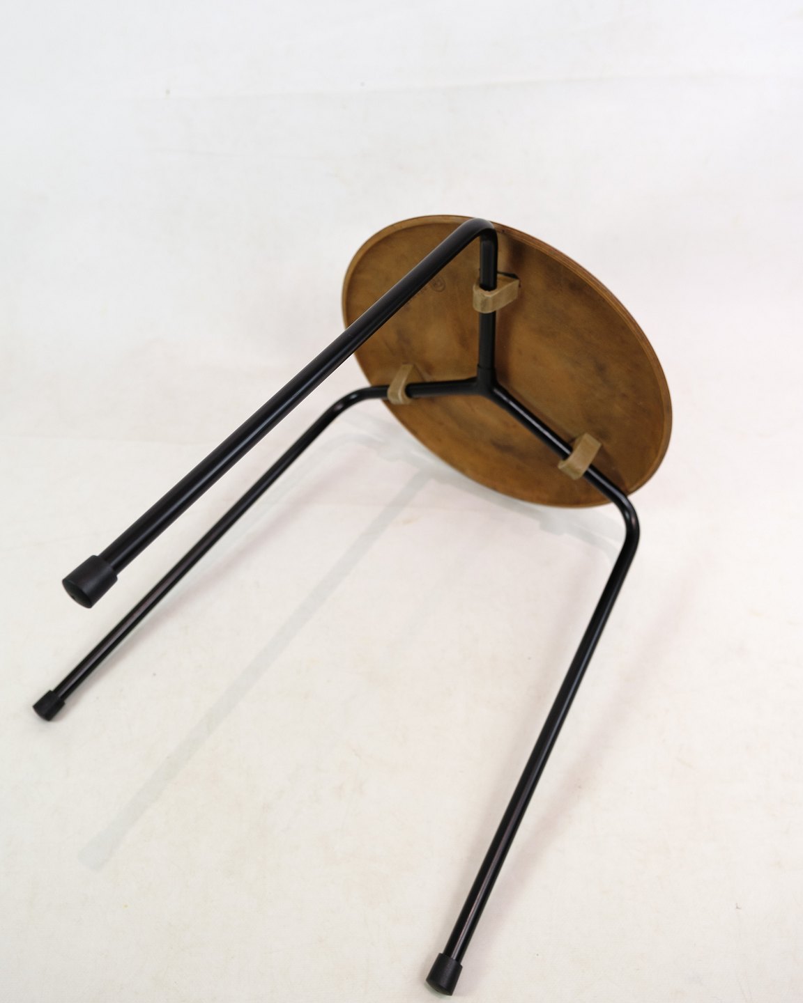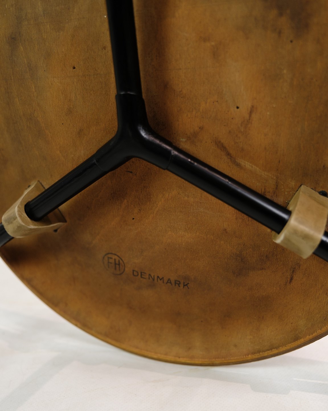 SolgtEt sæt skamler af træsorten teaktræ med sort stel, designet af Arne Jacobsen og fremstillet af Fritz Hansen fra omkring 1950'erne.