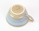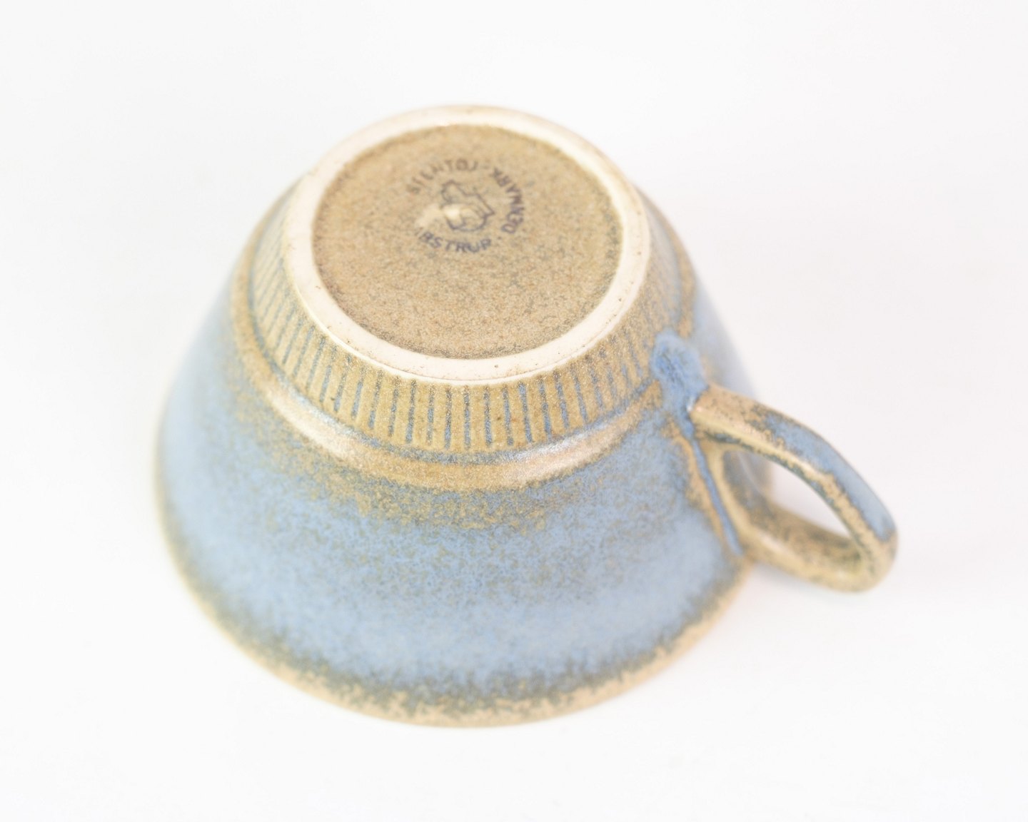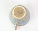 Kaffekopper med underkop i stentøj af Nødebo i blå farver fra omkring 1970'erne.