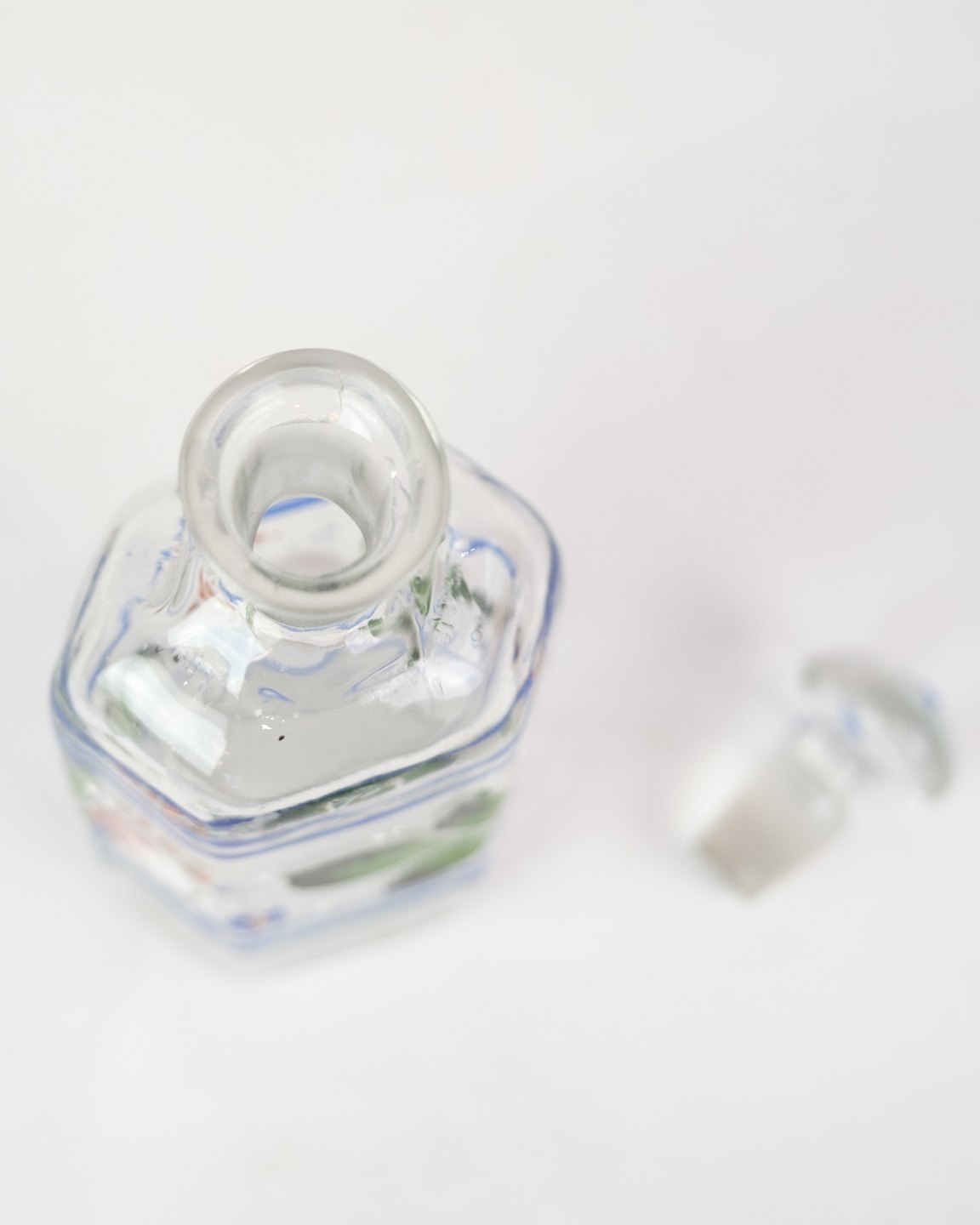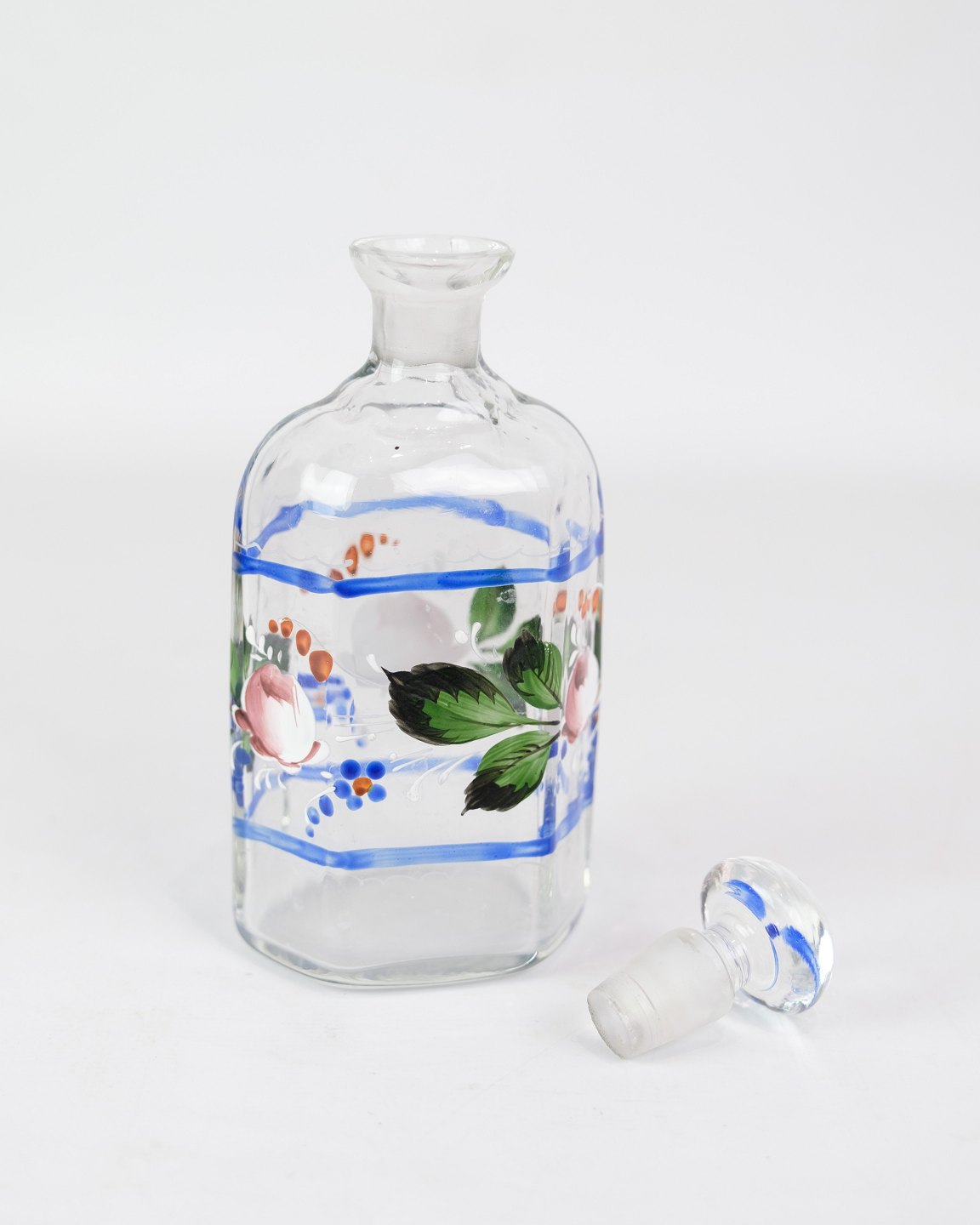 En Karaffel med håndmalet blomster dekoration fra omkring år 1930'erne.