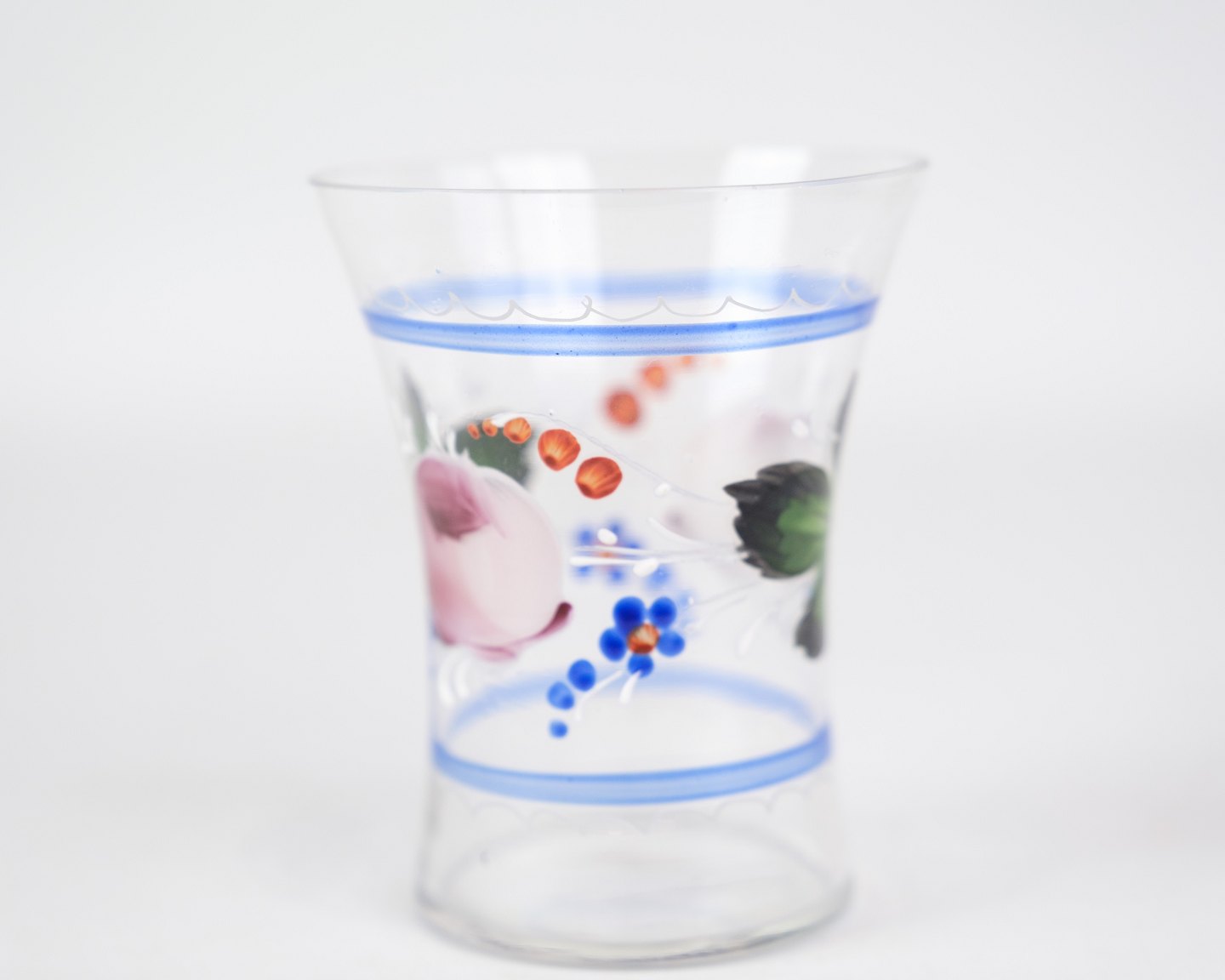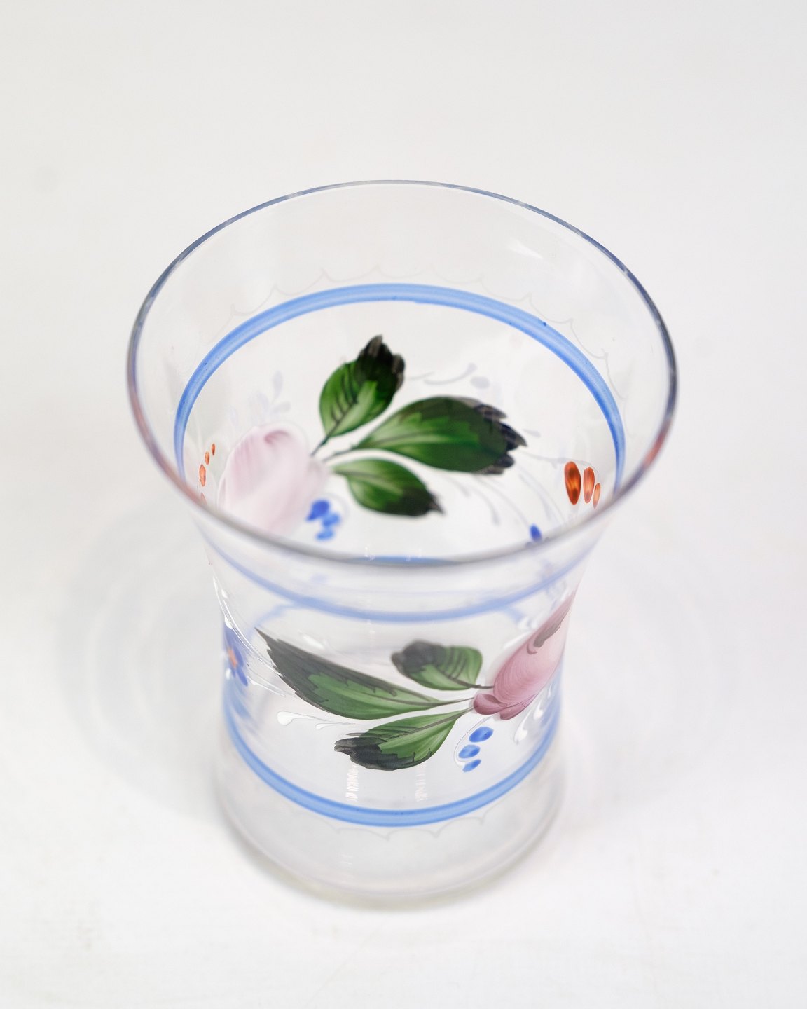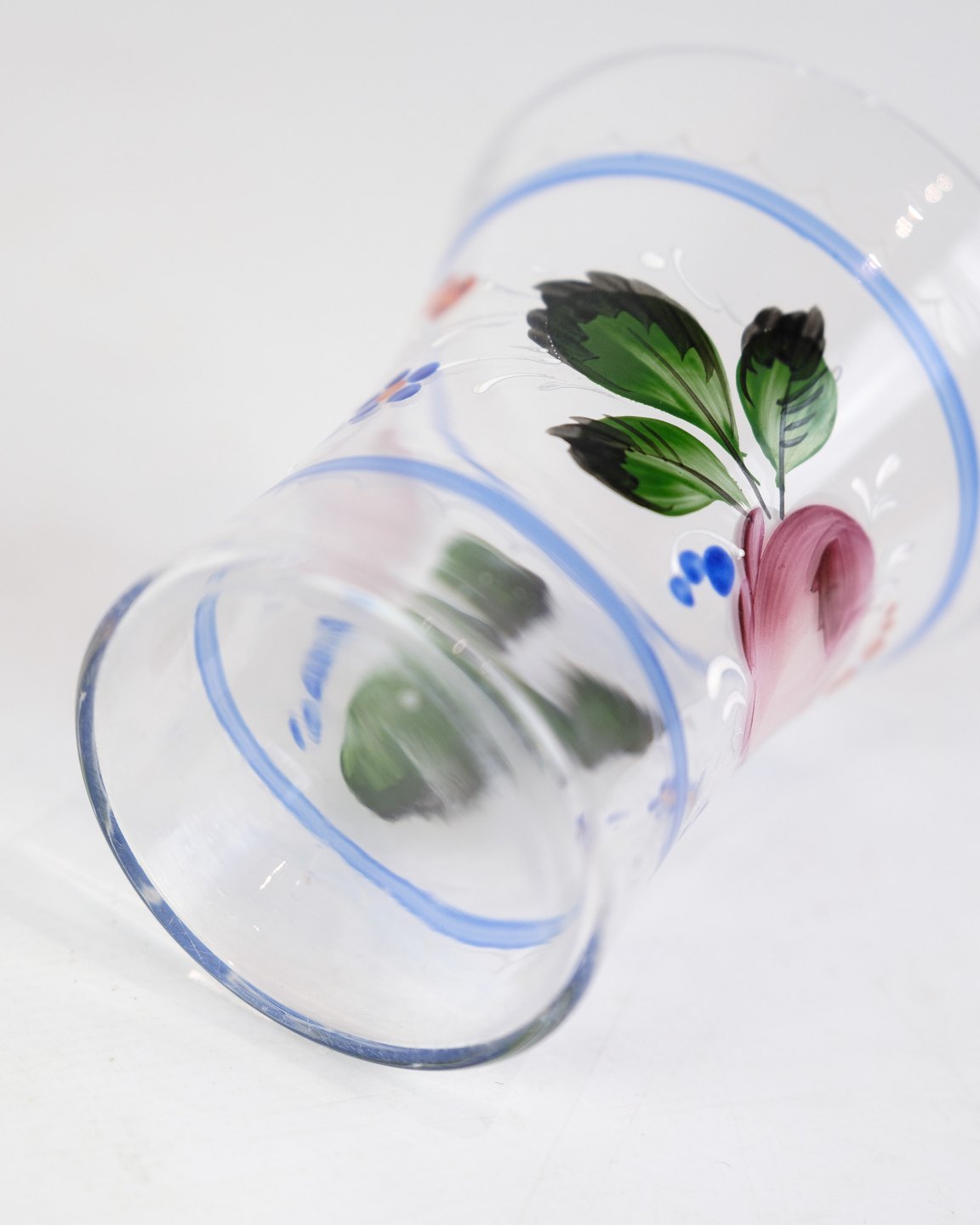 Et par glas vaser med håndmalet blomster dekoration fra omkring år 1930'erne.
