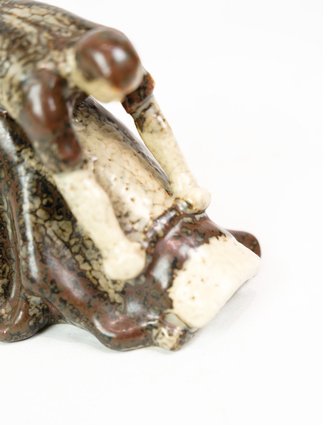 Keramik figur, designet af Hugo Liisberg og fremstillet af Saxbo keramik fra omkring 1960'erne. Figuren har en flot glasur i hvide og brunlige farver.