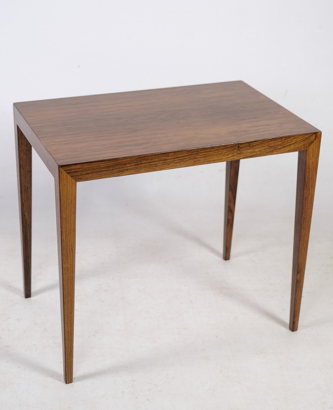 SolgtIndskudsborde, designet af Severin Hansen og fremstillet af Haslev Møbelfabrik i omkring 1960'erne, repræsenterer et smukt eksempel på dansk møbelkunst og håndværk fra midten af det 20. århundrede. Disse borde er skabt af palisandertræ, der er kendt for sin rige farve og karakteristiske årer, og de udstråler en tidløs elegance.