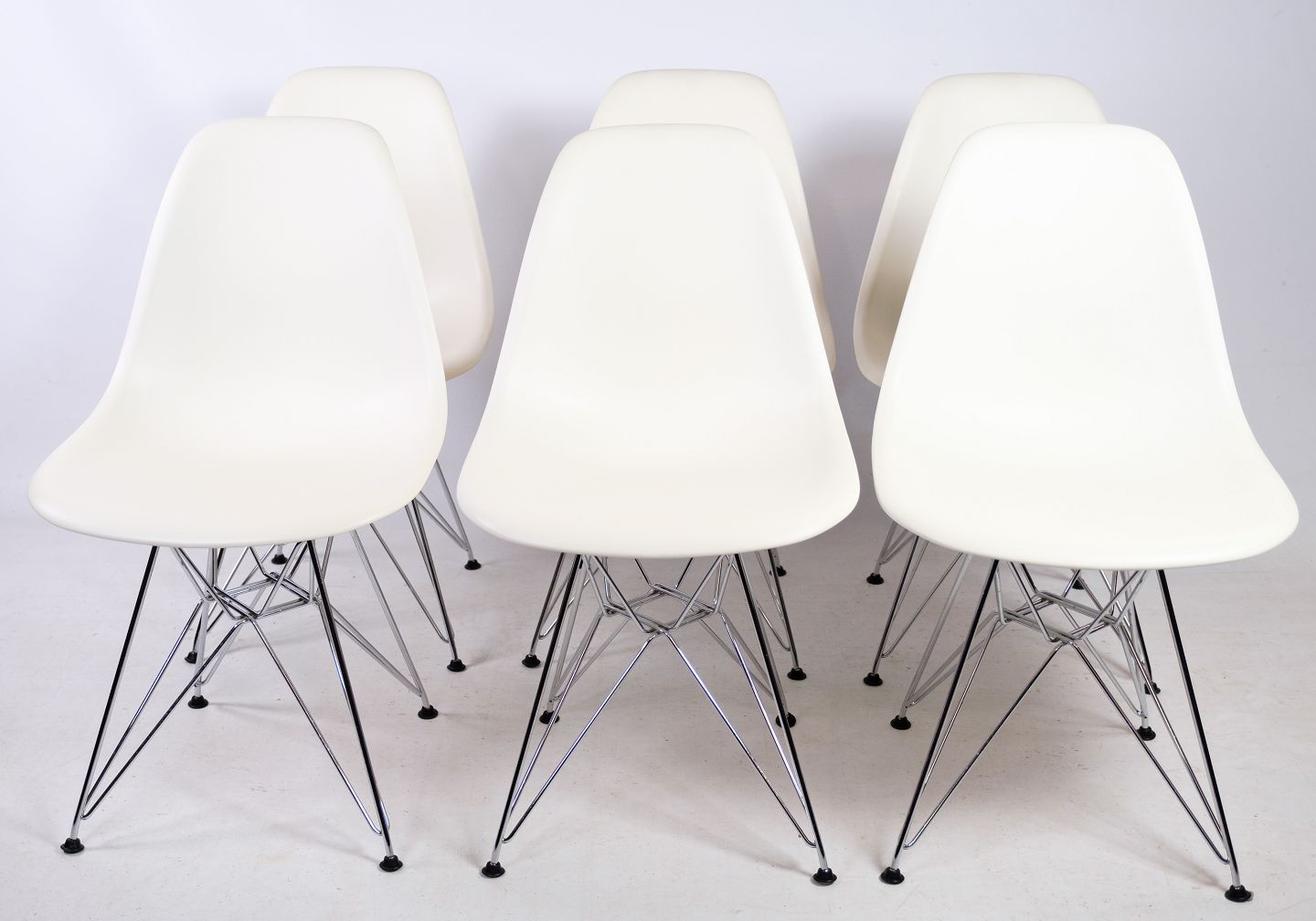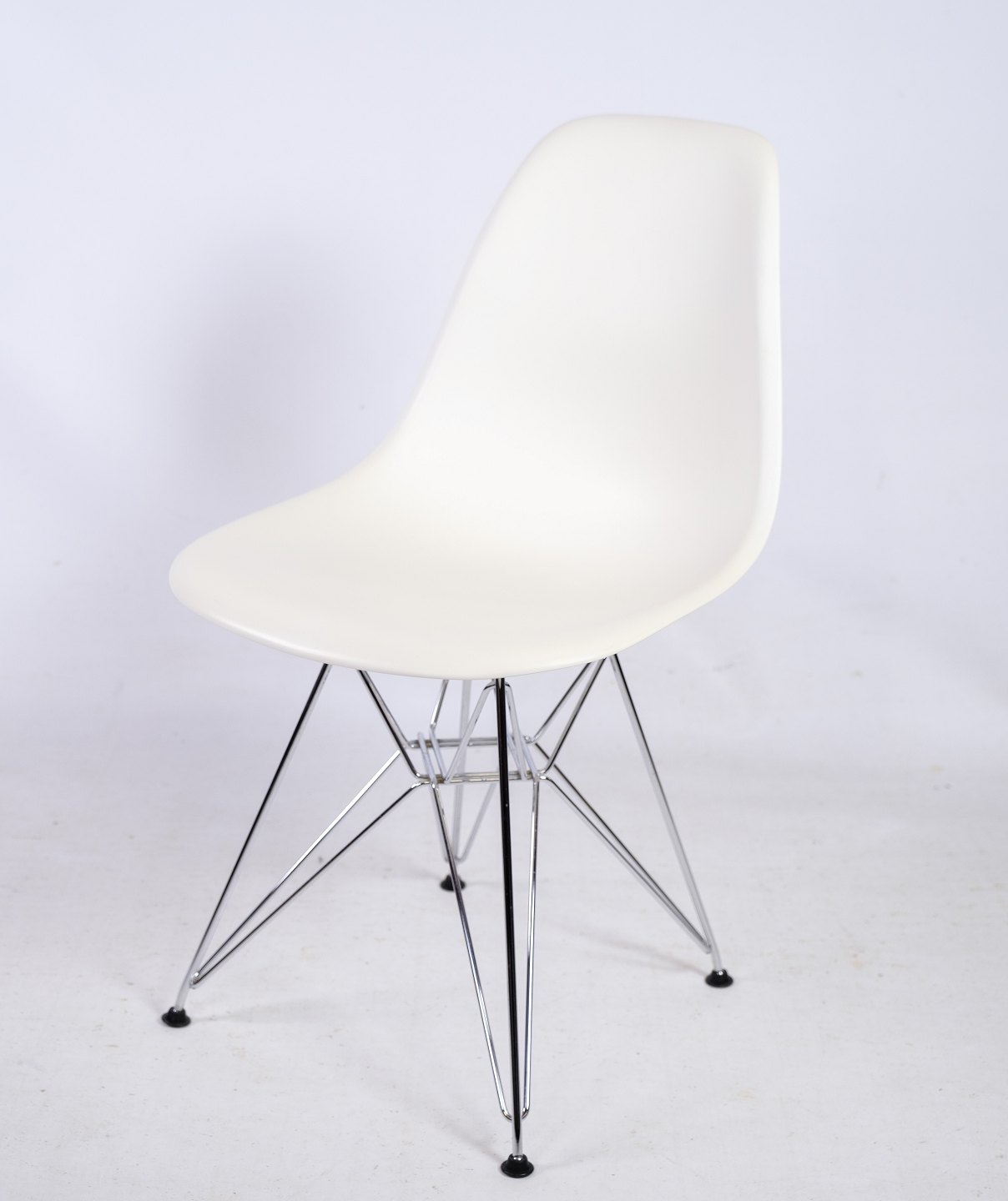 SoldThe DSR chair, designed by Charles and Ray Eames in white plastic with an Eiffel Tower frame debuted in 1948 for MoMA's "Low-cost furniture design"