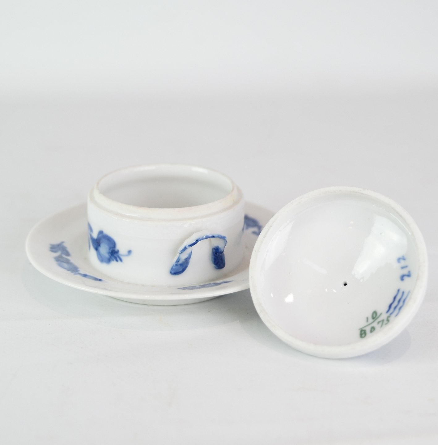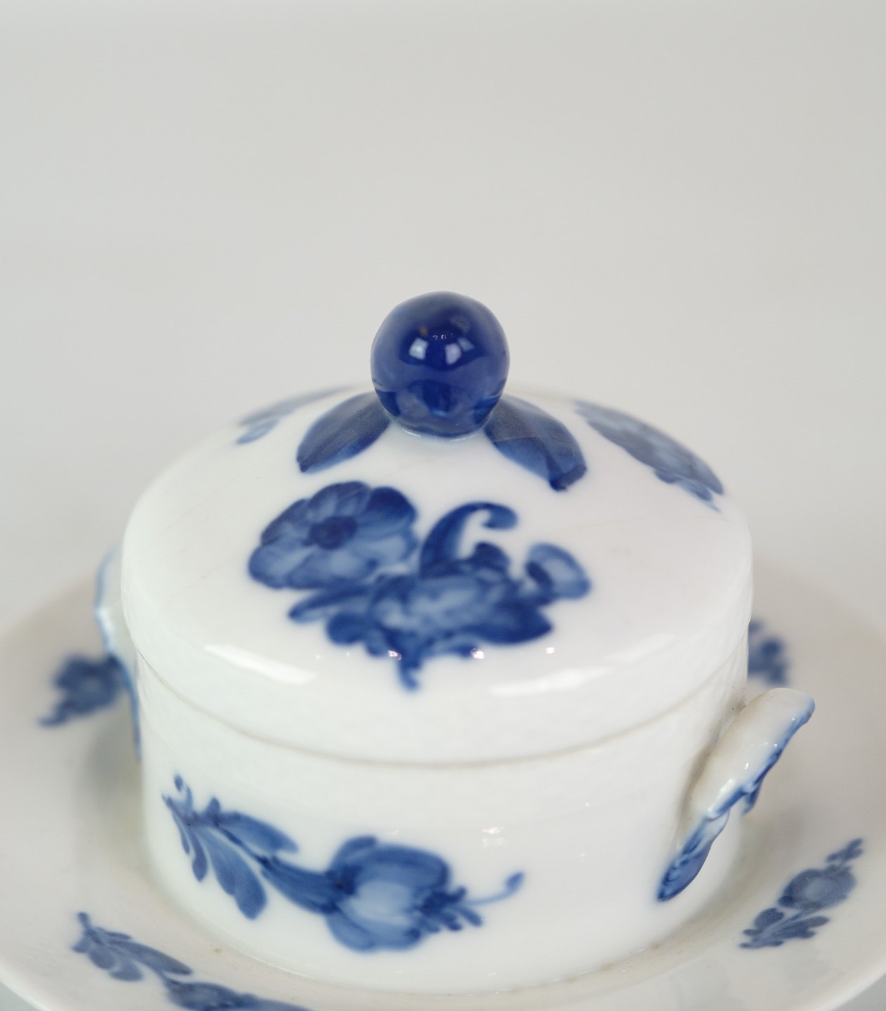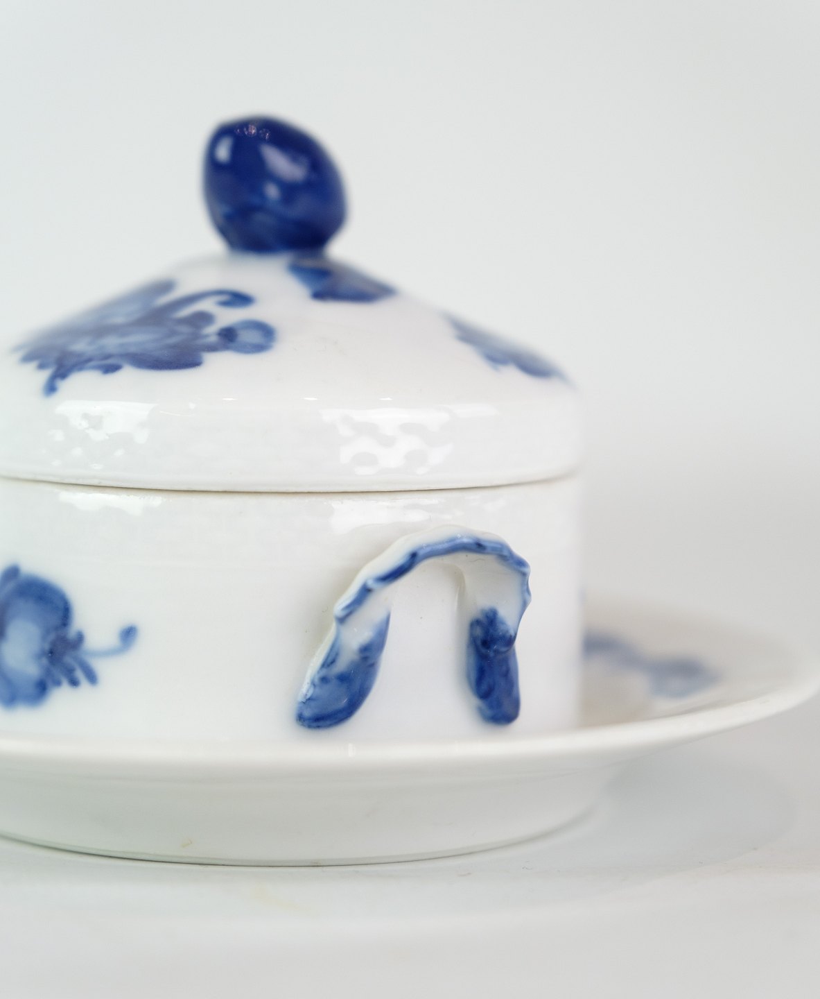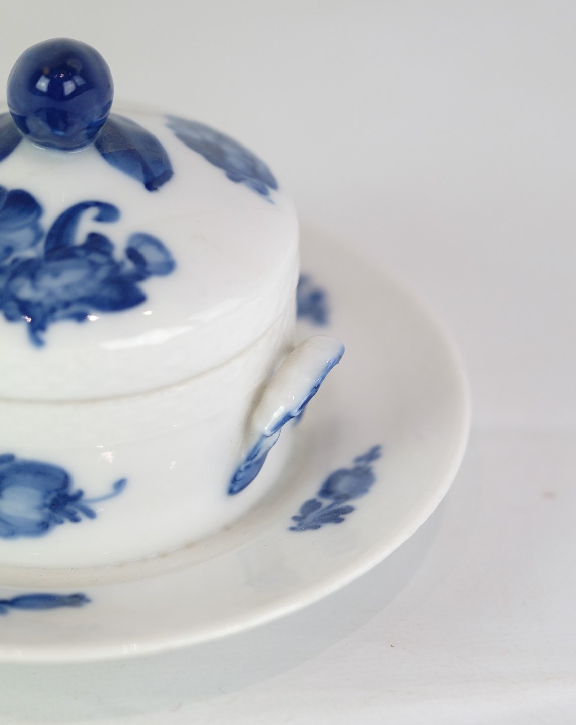 Kongelig smørskål på fast fod med mønstret blå blomst flettet nr. 10/8075. 1 sortering.