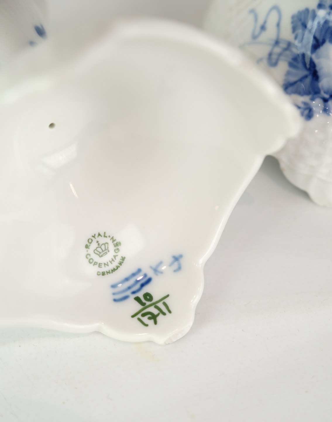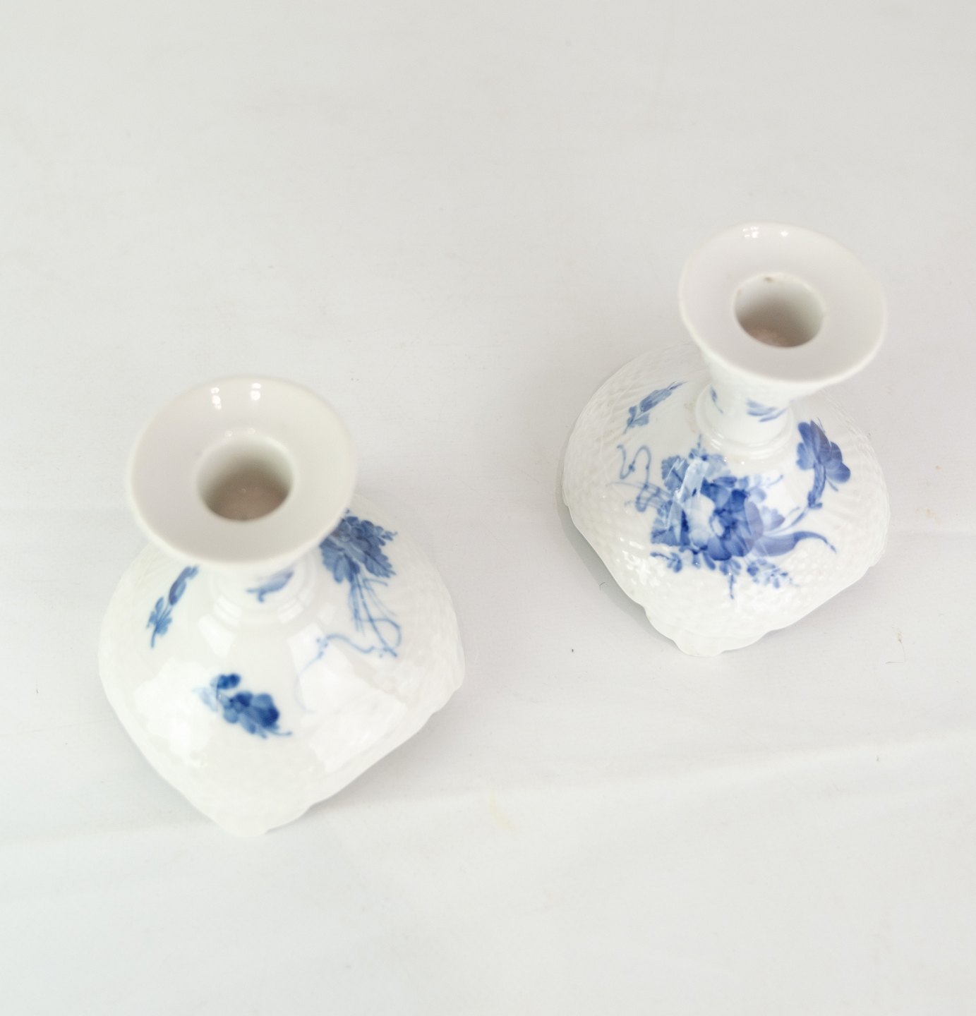 A pair of candlesticks in a patterned blue flower swooped by Royal Copenhagen no. 1711