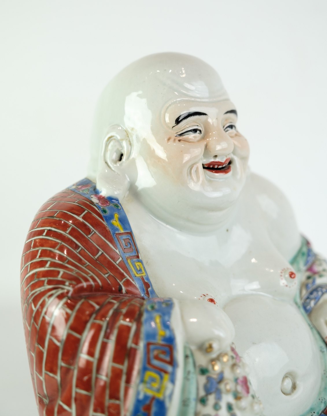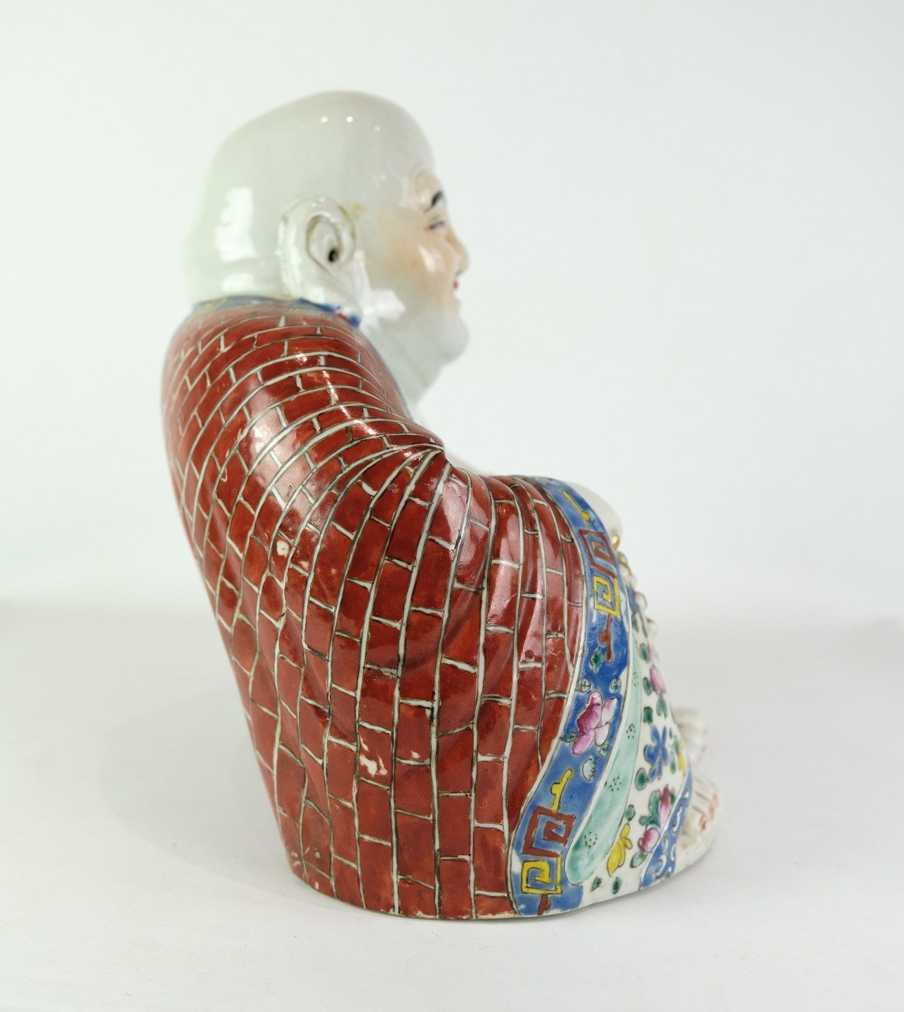 SolgtSiddende Buddha darduse figur af porcelæn dekoreret i lyse of brune farver fra kina omkring 1900-tallet.