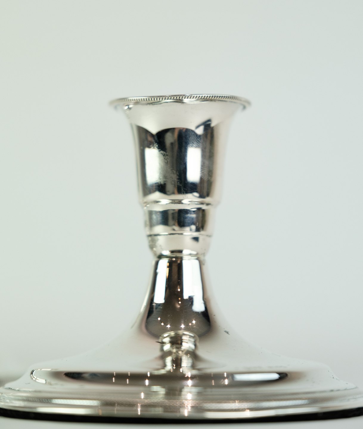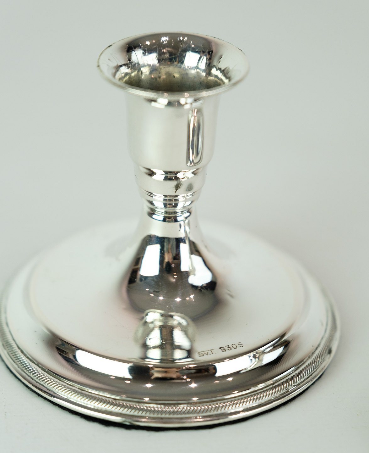 Low silver candlesticks made by silversmith Sven Toksværd in the material silver 830 sterling from around the 1930s.