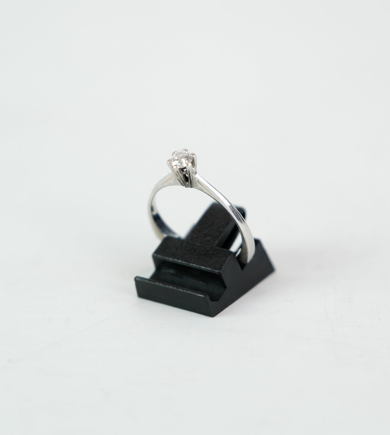 Prinsesse / solitaire ring af hvidguld af 14 karat guld, stemplet "BEC" 585 med en 0,25 karat diamant.