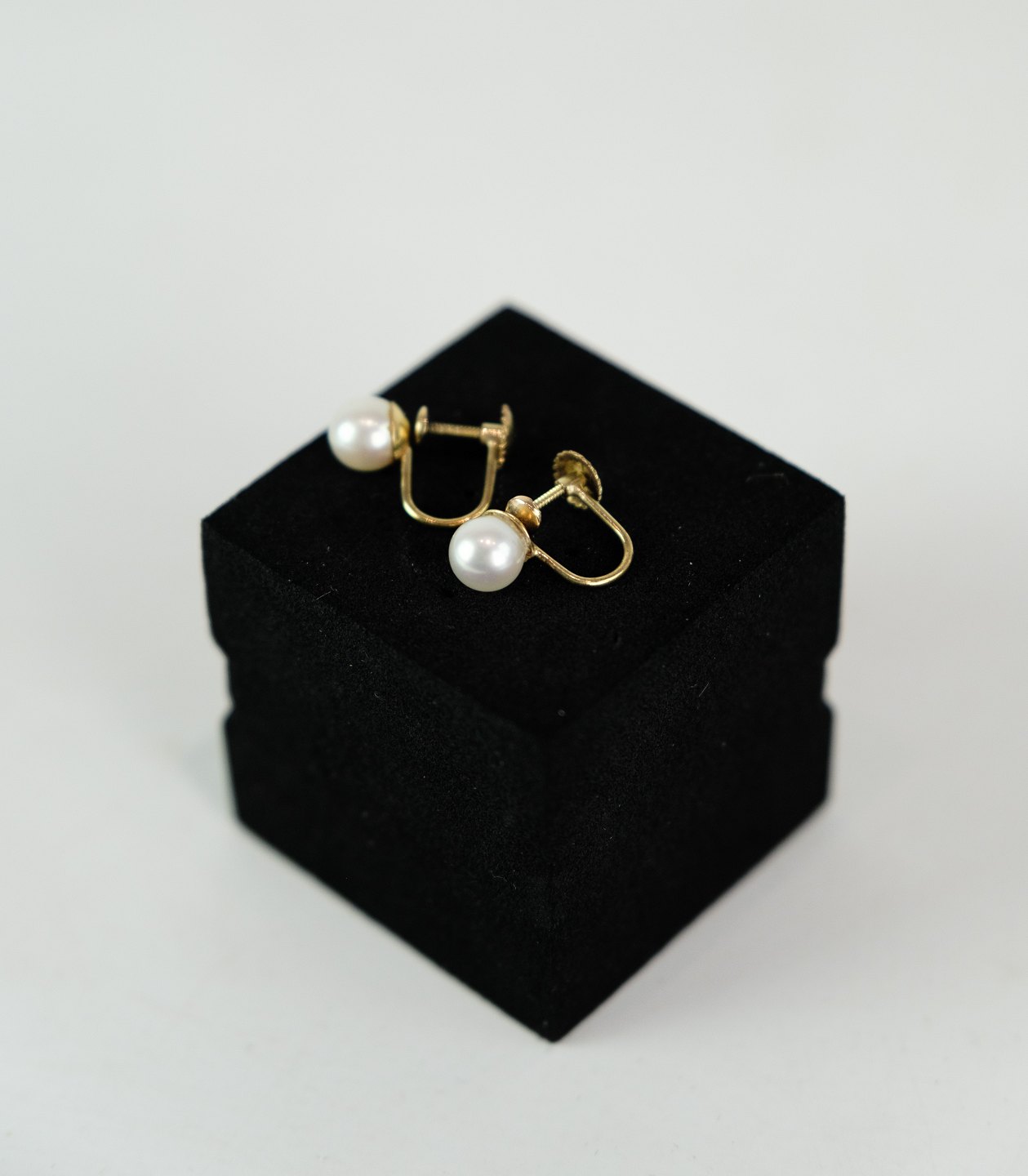 Kulturperle øreringe med skruelås i 14 karat, stemplet 585. Perlen har en flot cream hvid farve.