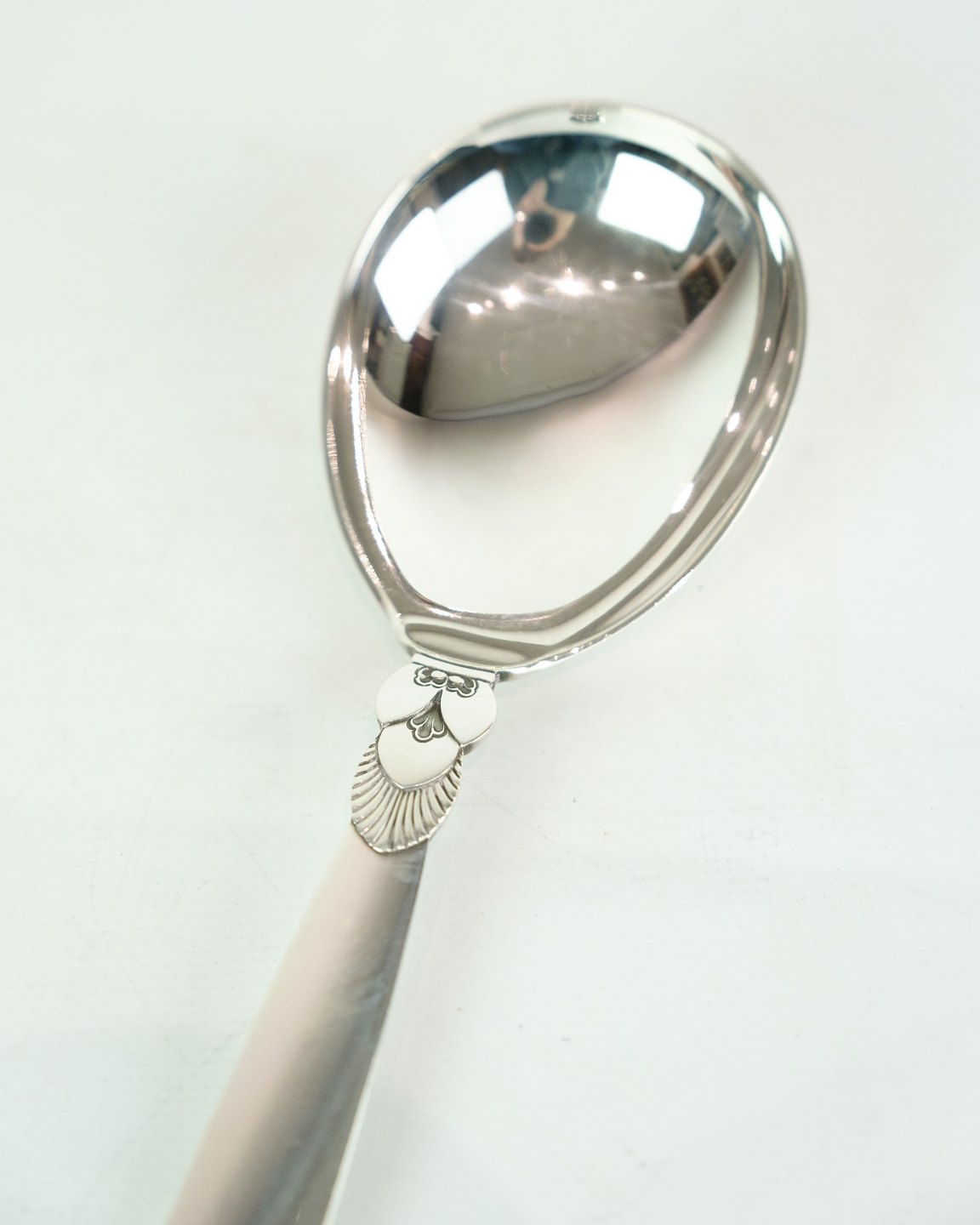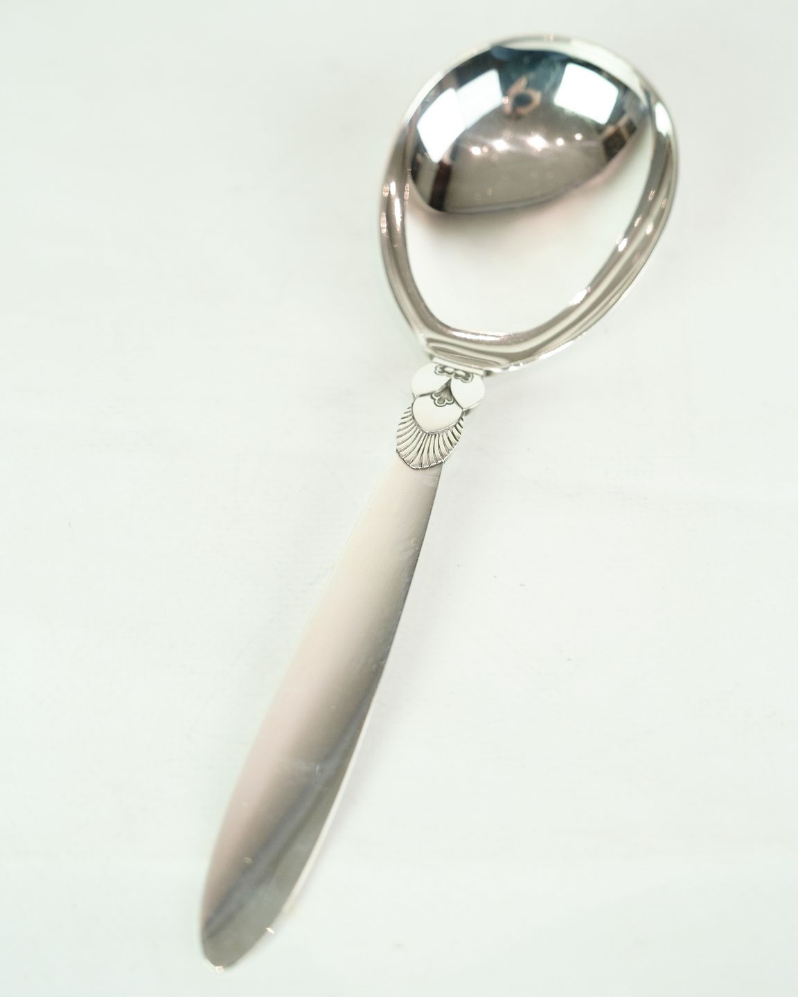 This Georg Jensen Kaktus vintage silver serving spoon is a beautiful and practical addition to your dining table. Designed by Gundorph Albertus in 1930 and crafted in sterling silver, this spoon exudes tradition, quality and elegance. Although in a nice used condition with normal signs of use, it will still bring a touch of charm to your next dinner. Own this unique and beautiful silver cutlery today.