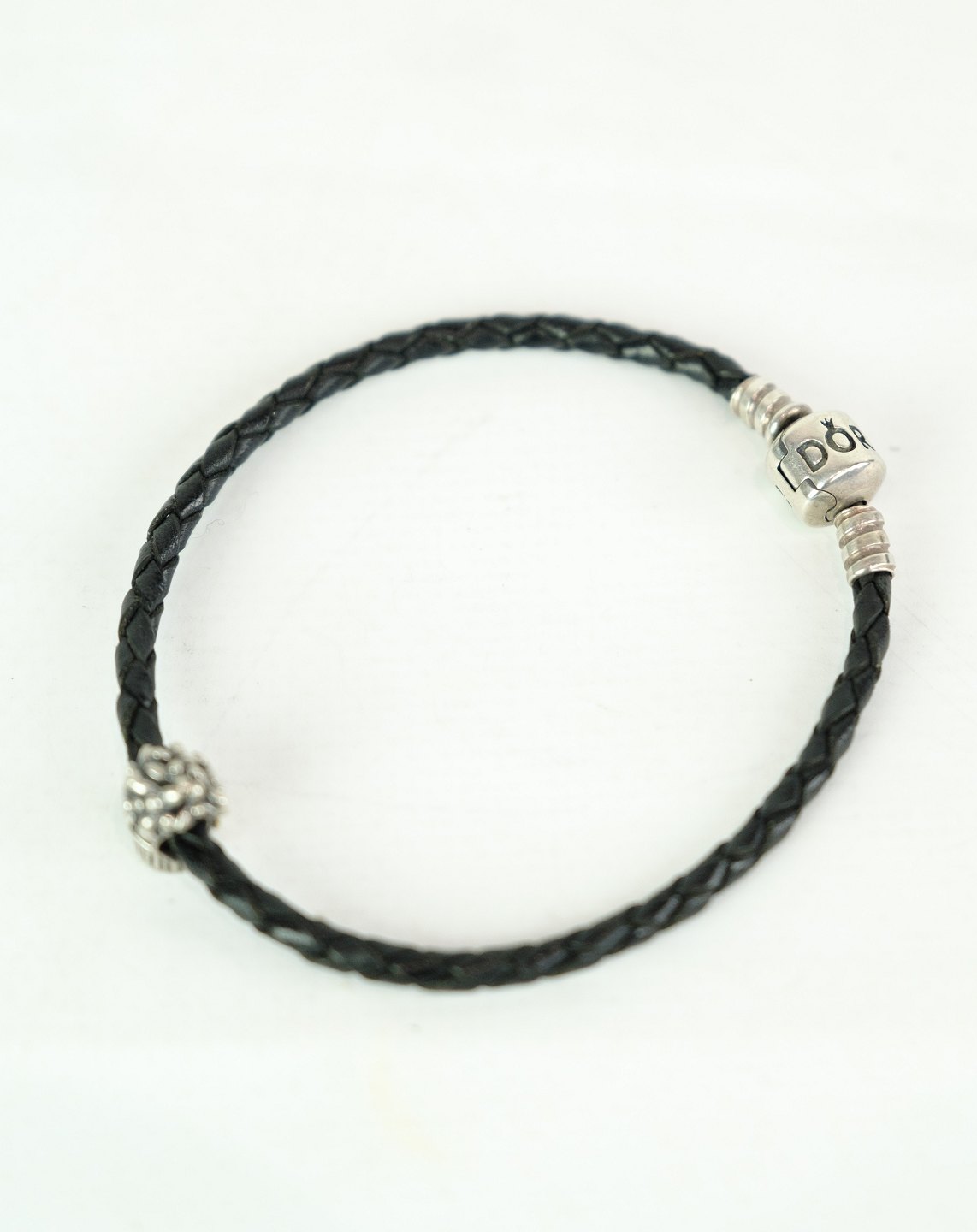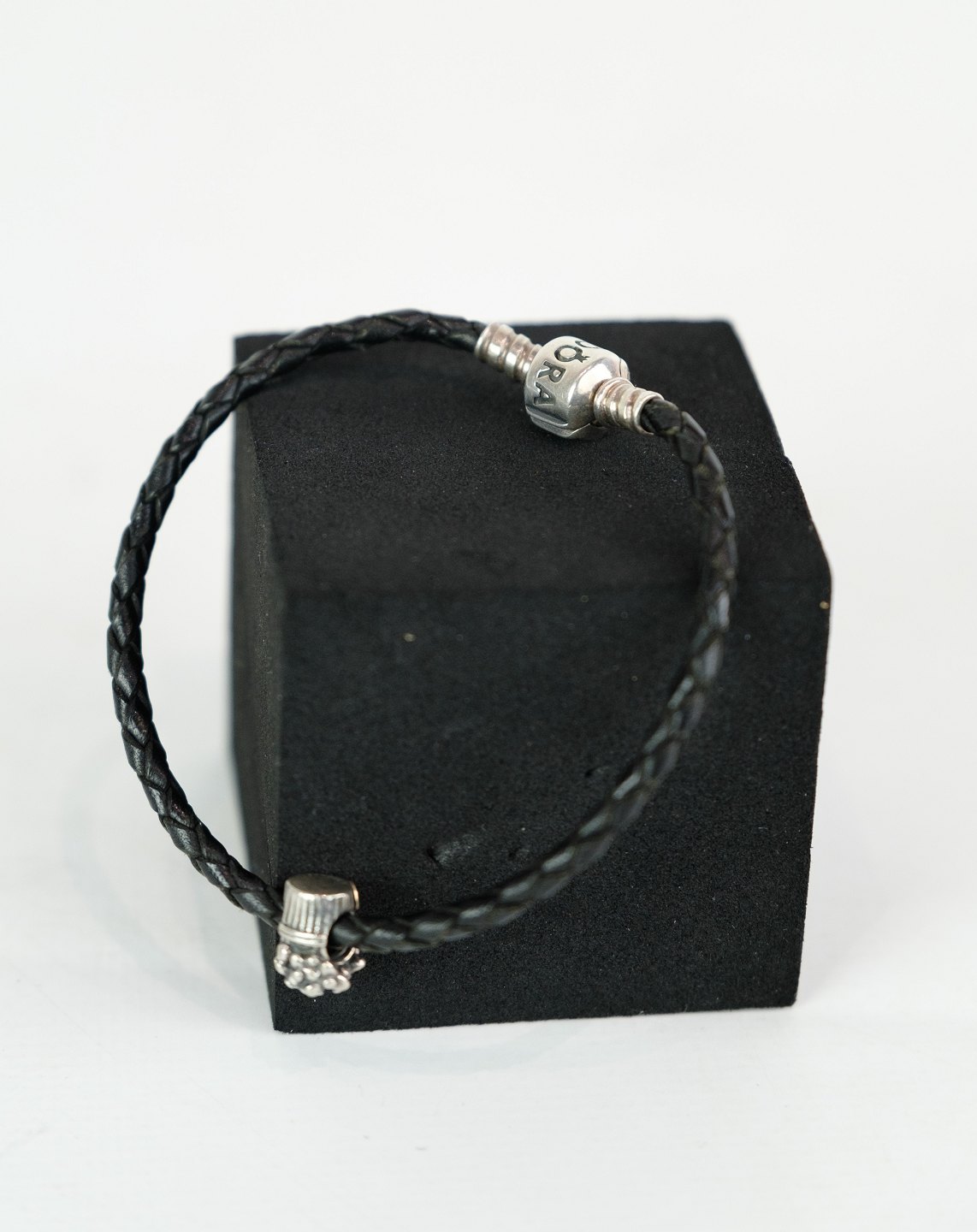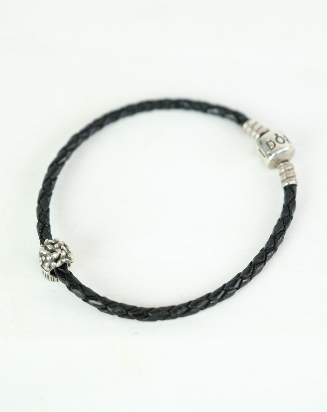 Armbånd, Pandora, sort flet, 925 sterling sølv, original lås