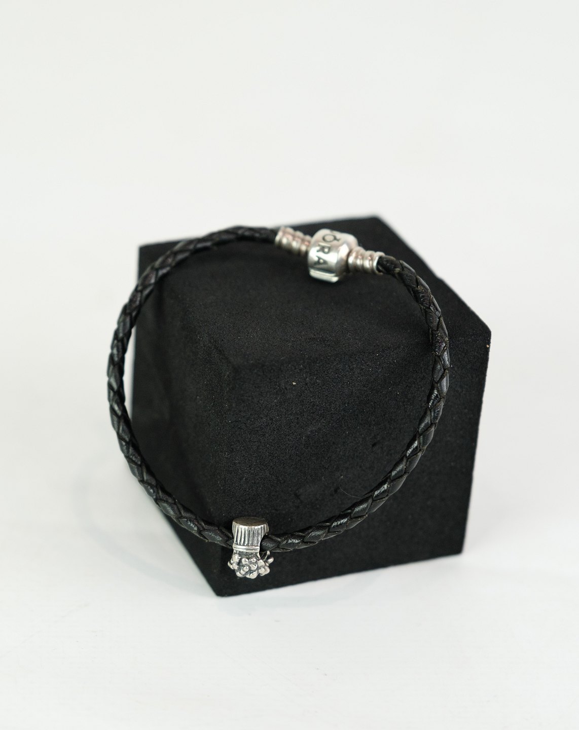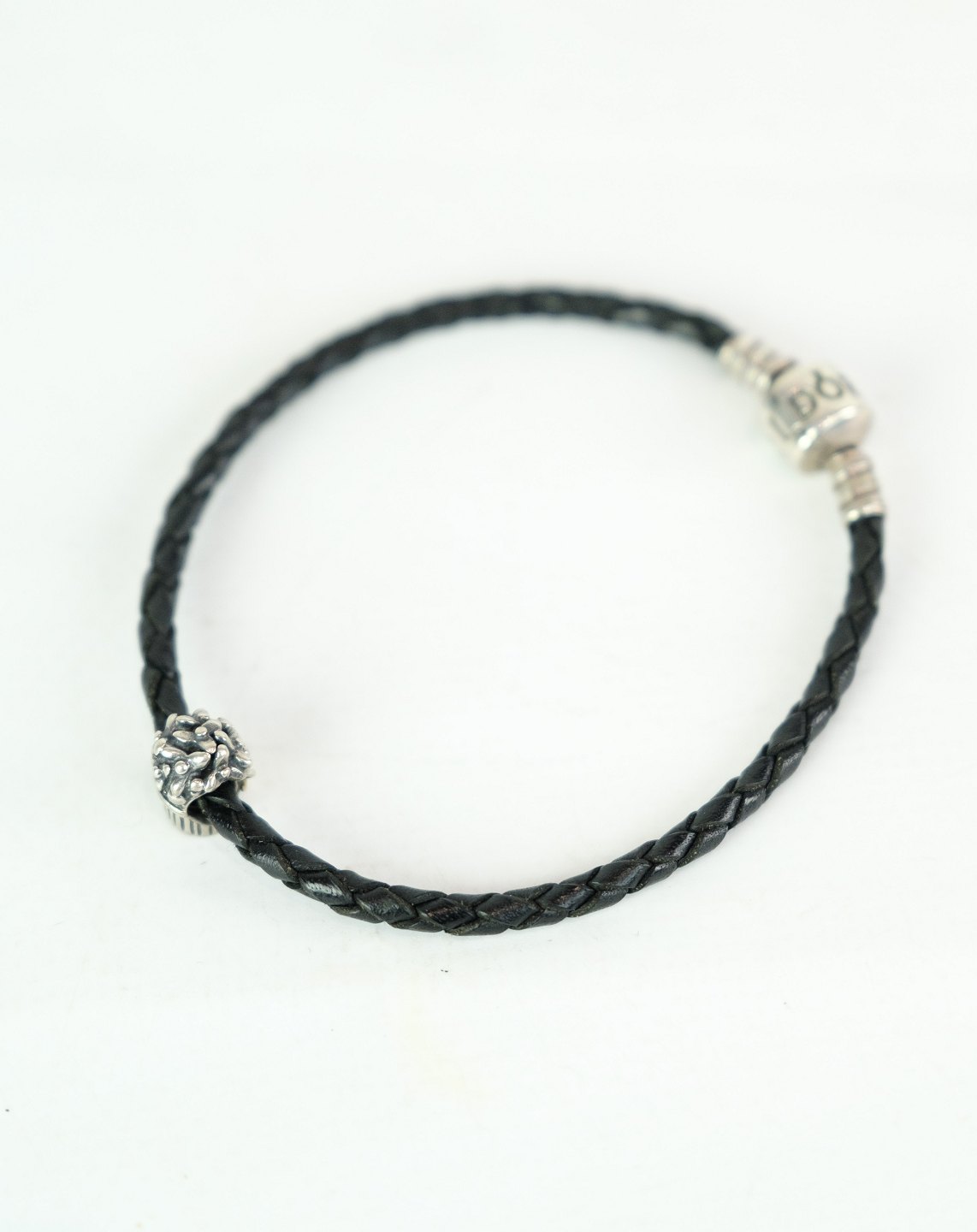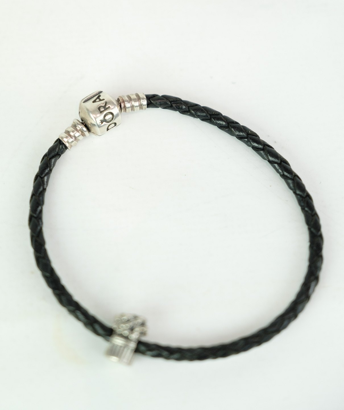 Armbånd, Pandora, sort flet, 925 sterling sølv, original lås
