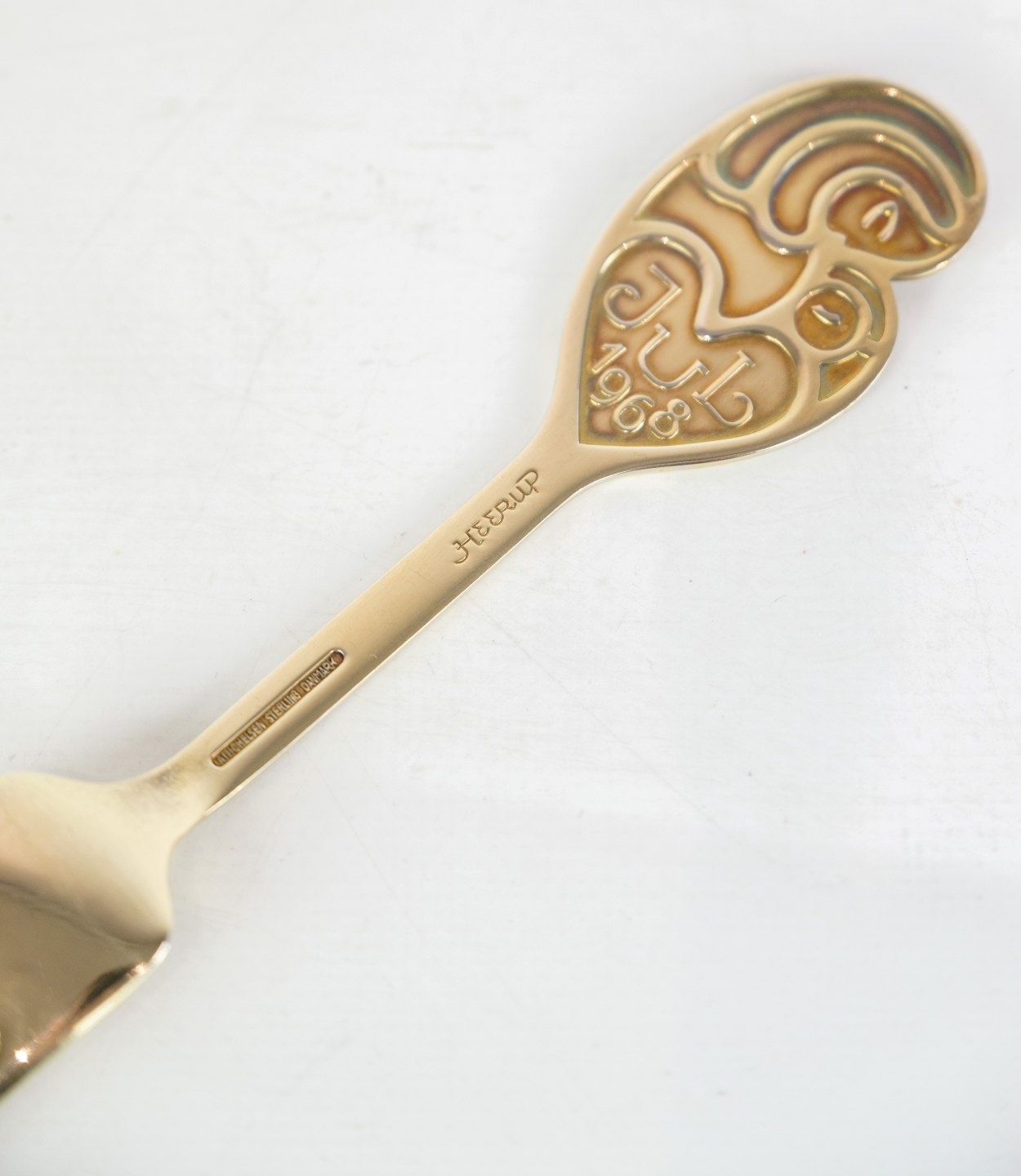 Michelsen juleskeen i 1968 er lavet af forgyldt sterling sølv og har et flot motiv af Madonna og Barnet eller et Moders Hjerte, som er skabt af kunstneren Henry Heerup. Skeen er i pæn stand og vil være et værdifuldt og unikt supplement til ethvert juletræ. Michelsen er kendt for at skabe smukke, håndlavede julegaver af høj kvalitet, og denne juleske er ingen undtagelse. Det forgyldte sterling sølv giver skeen et elegant look, der vil gøre indtryk på alle, der ser den. Med sin smukke kunstneriske detaljer og håndlavede kvalitet vil denne juleske blive en værdsat del af dit juletræ i mange år fremover.