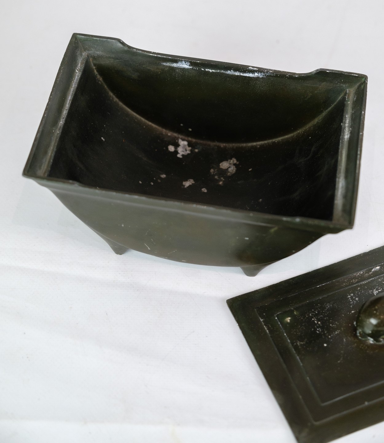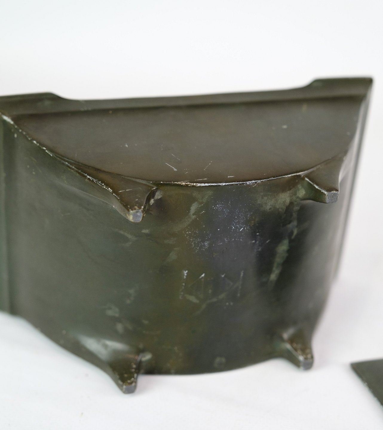 Blikkasse, designet af Just Andersen med dekoration af rådyr tidlig produktion stemplet fra omkring 1940'erne.
