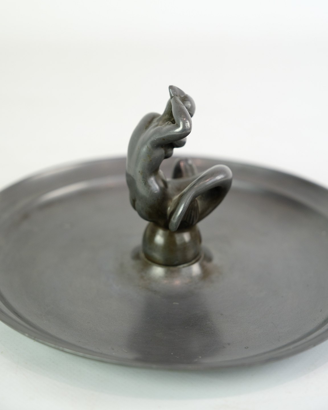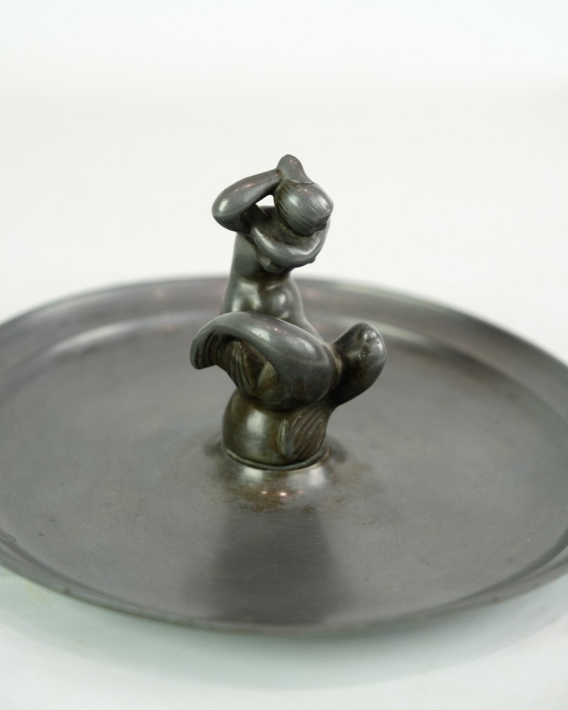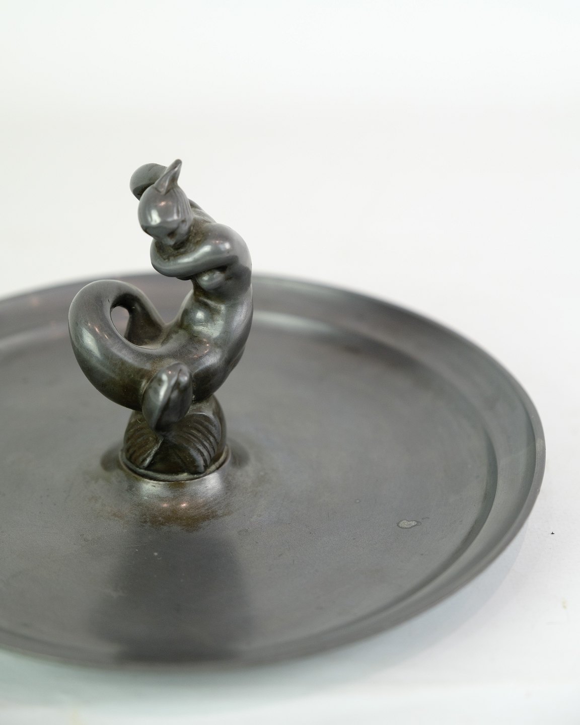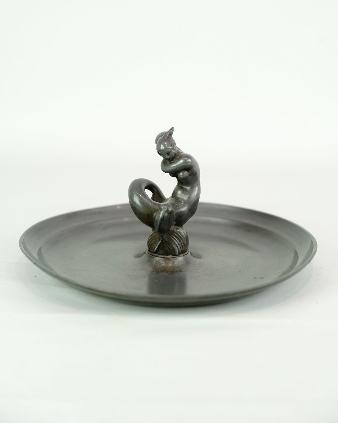 Dish, designed by Just Andersen with a motif of a mermaid figure in disco metal from the 1930s. Often used as a key dish for the desk or entrance.