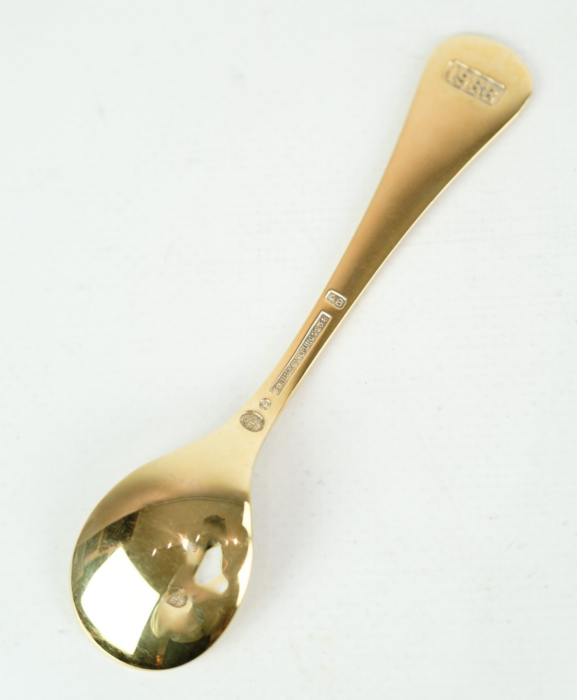 Georg Jensen annual spoon, gilded sterling silver, title "Trævlekrone", 1988