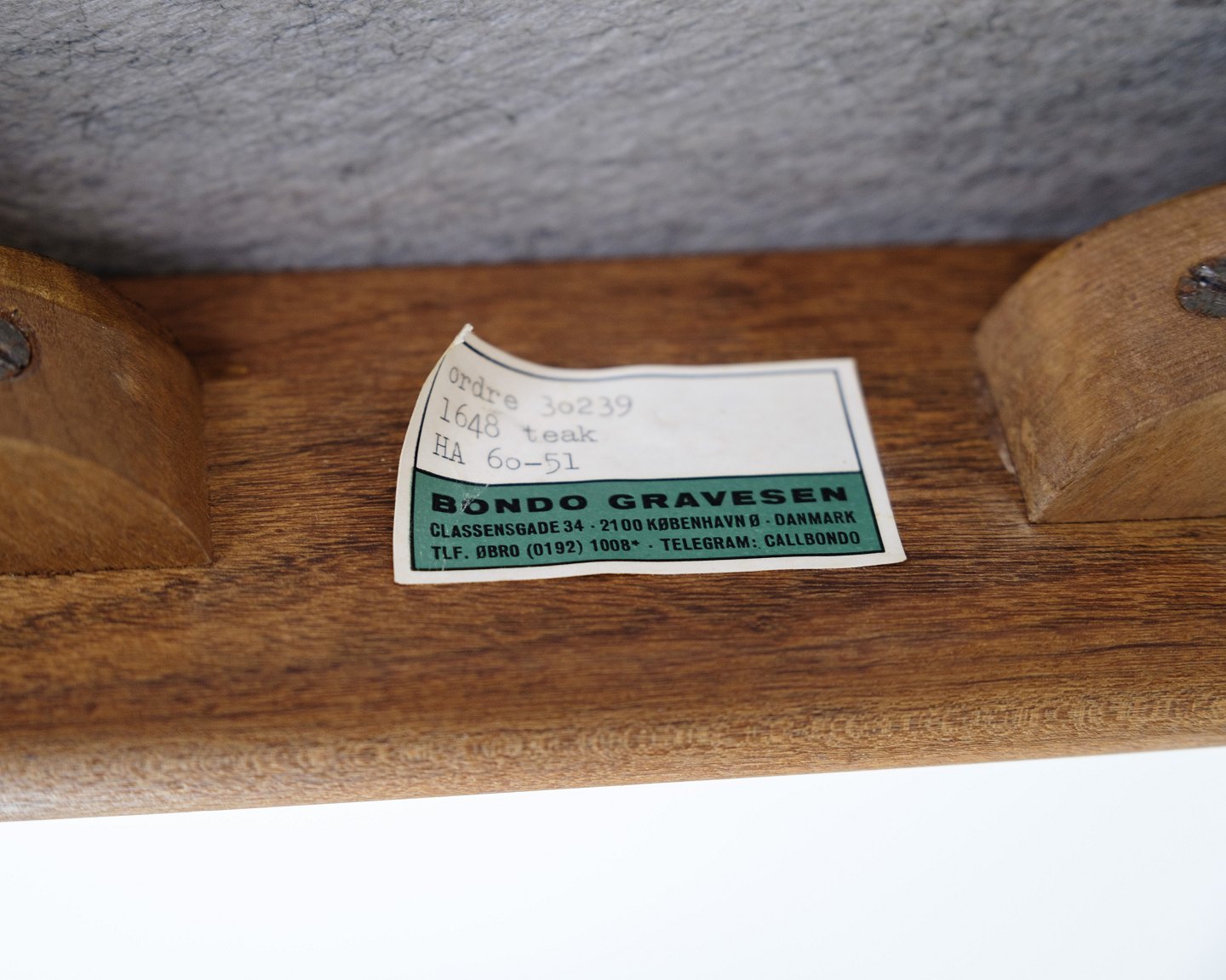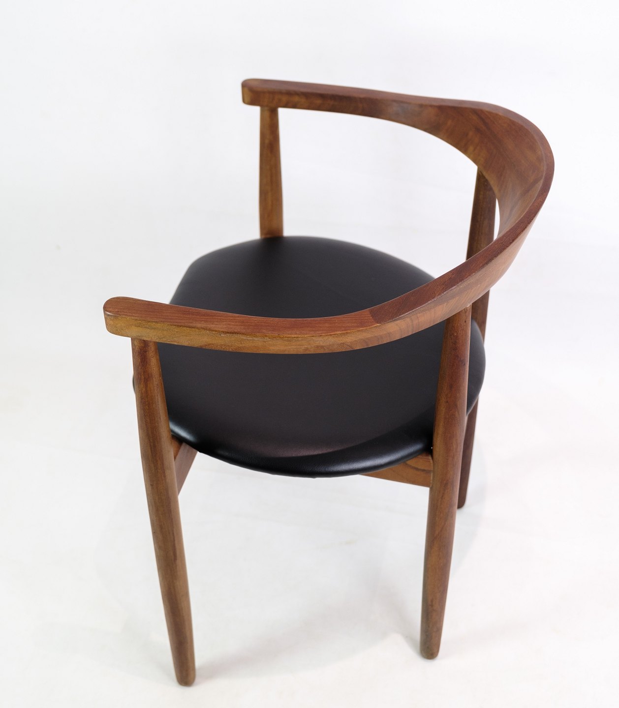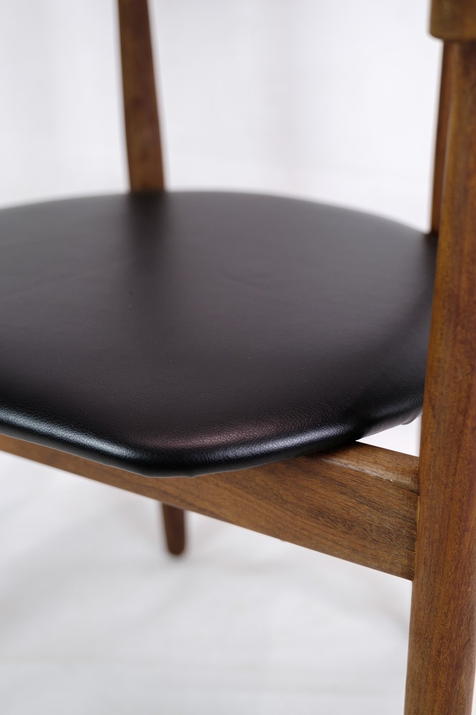 Armchair, designed by Bondo Graversen with solid teak frame and seat upholstered in black artificial leather. A very fine and charming chair from the 1960s, which brings a lot of history into the home.