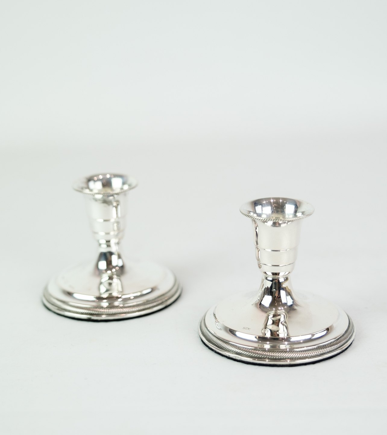 Dette par sølvlysestager i sølv 830 med perlekant er fremstillet af sølvsmed Svend Toksværd og er i perfekt stand. Lysestagerne vil bringe elegance og charme til enhver borddækning eller indretning, mens deres høje kvalitet og holdbarhed gør dem til en værdifuld tilføjelse til enhver samling. Lysestagerne er et must-have for fans af klassiske eller traditionelle stile