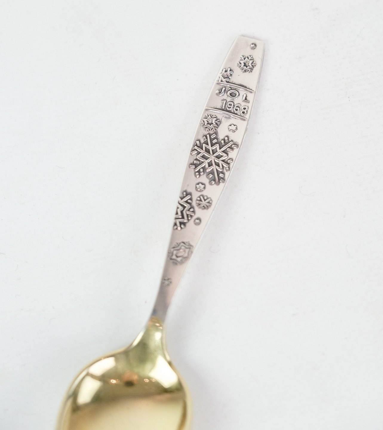 Juleske i delvist sølv forgyldt med motiv af snefnug fra år 1968.
