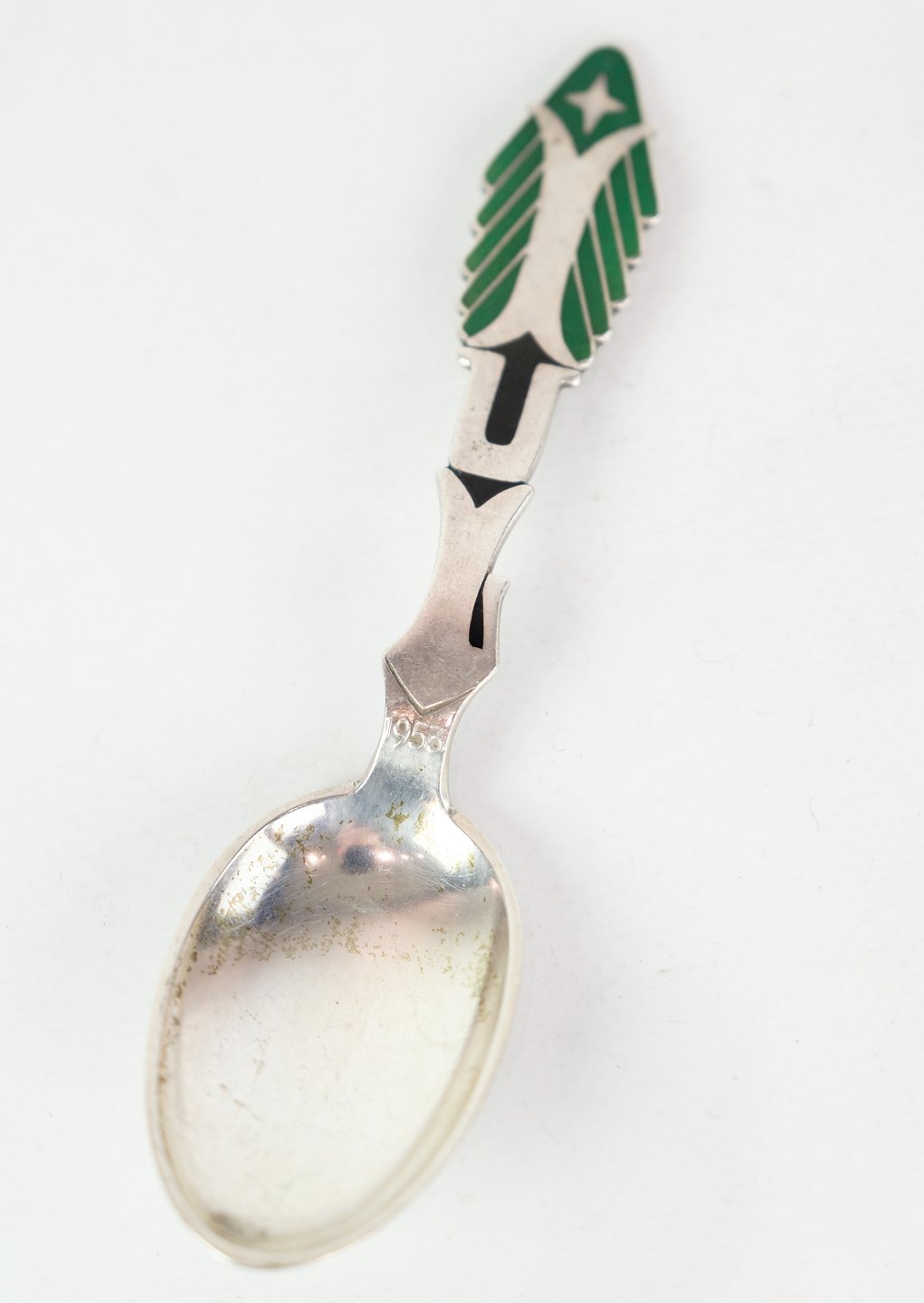 Christmas spoon from the 830s in the wooden tower with a motif of a Christmas tree with a star from the year 1953