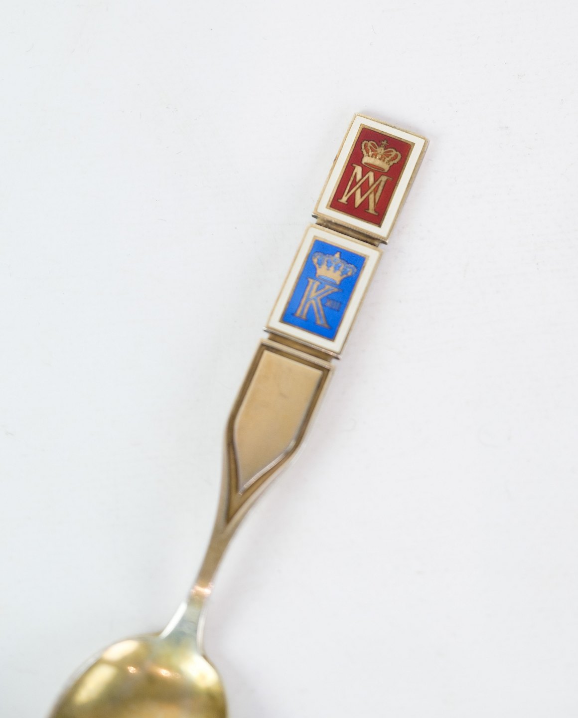 Jubilee spoon by A. Michelsen on the occasion of Queen Anne Marie and King Konstantin's bridal shower 18 September 1964. Designed by Erik Ellegaard Frederiksen.