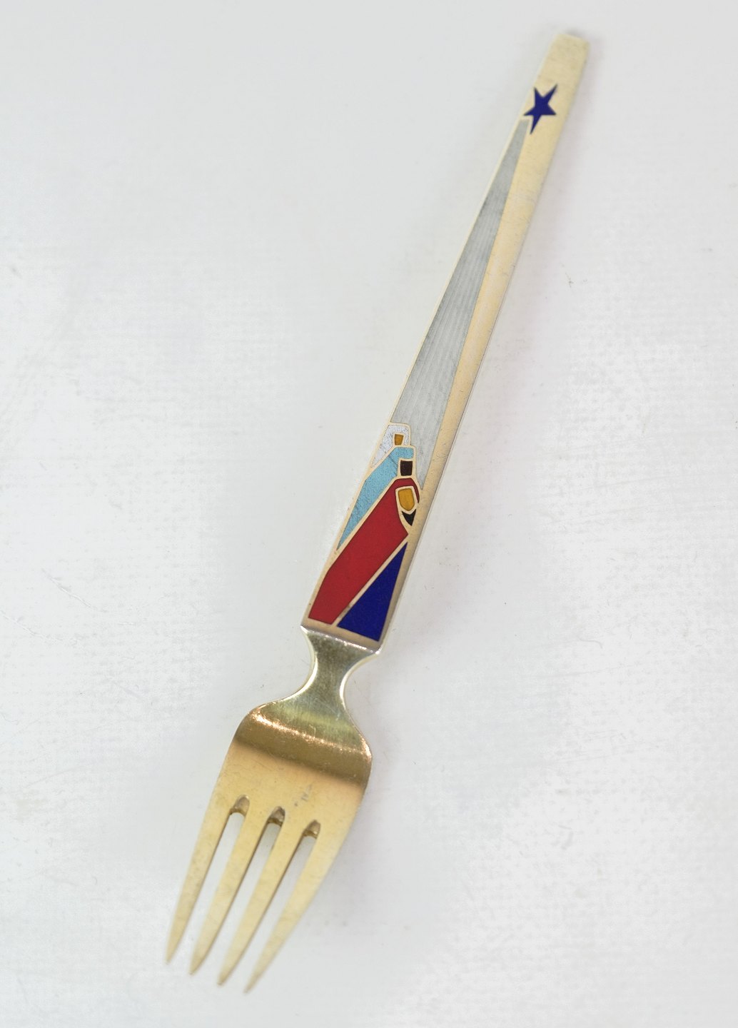Julegaflen 1958 Titel "Østens vise mænd" Forgyldt sølv med emaljedekoration designet af kunstneren Karl Gustav Hansen hertil produceret af Anton Michelsen.