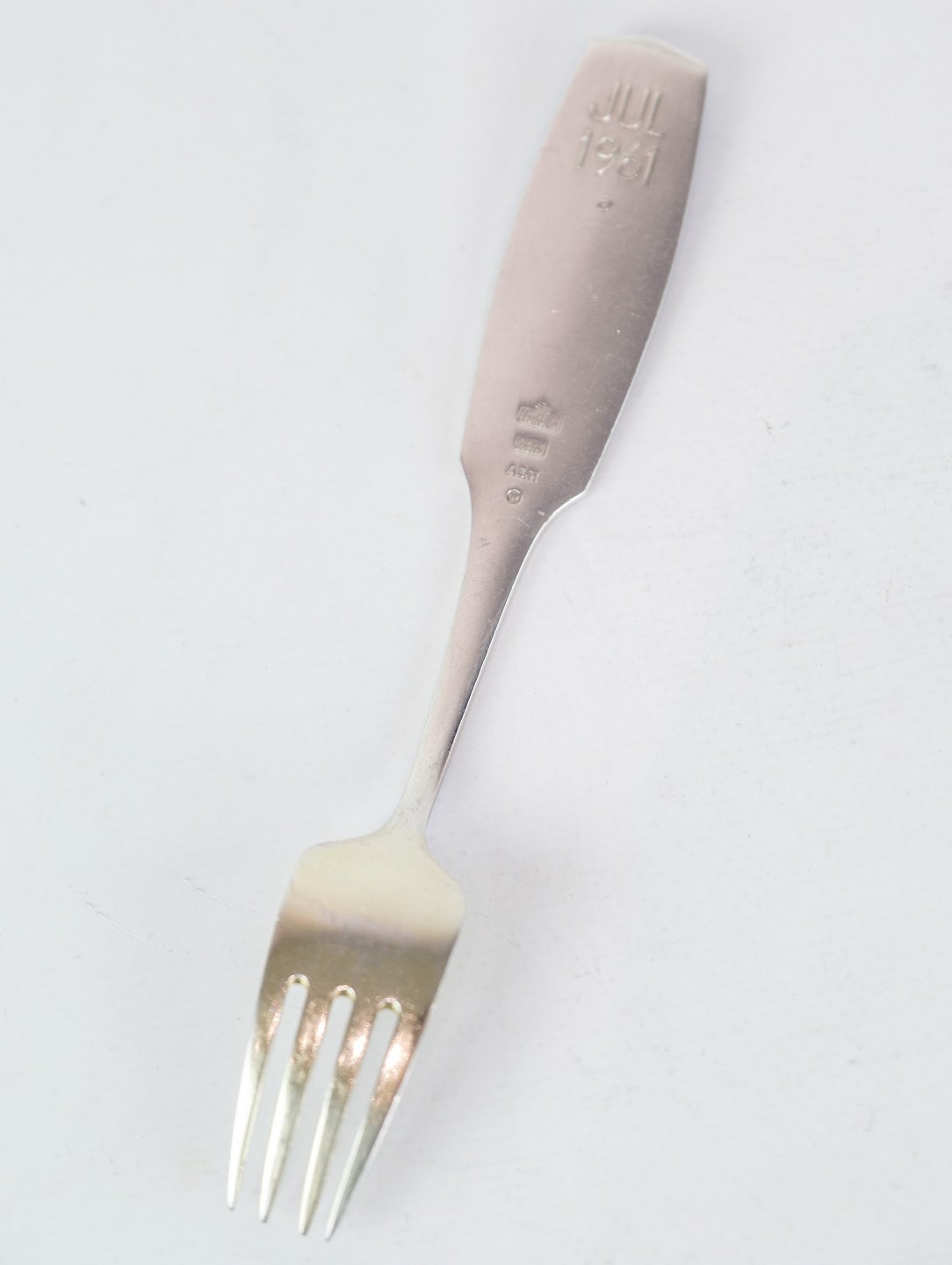Anton Michelsen Julegaffel med titlen Orgenpiber af kunsteren Arne L. Hansen i året 1961. julegaflen er i forgyldt sølv med emaljedekorationer blev først skabt hos sølvfirmaet A. Michelsen.