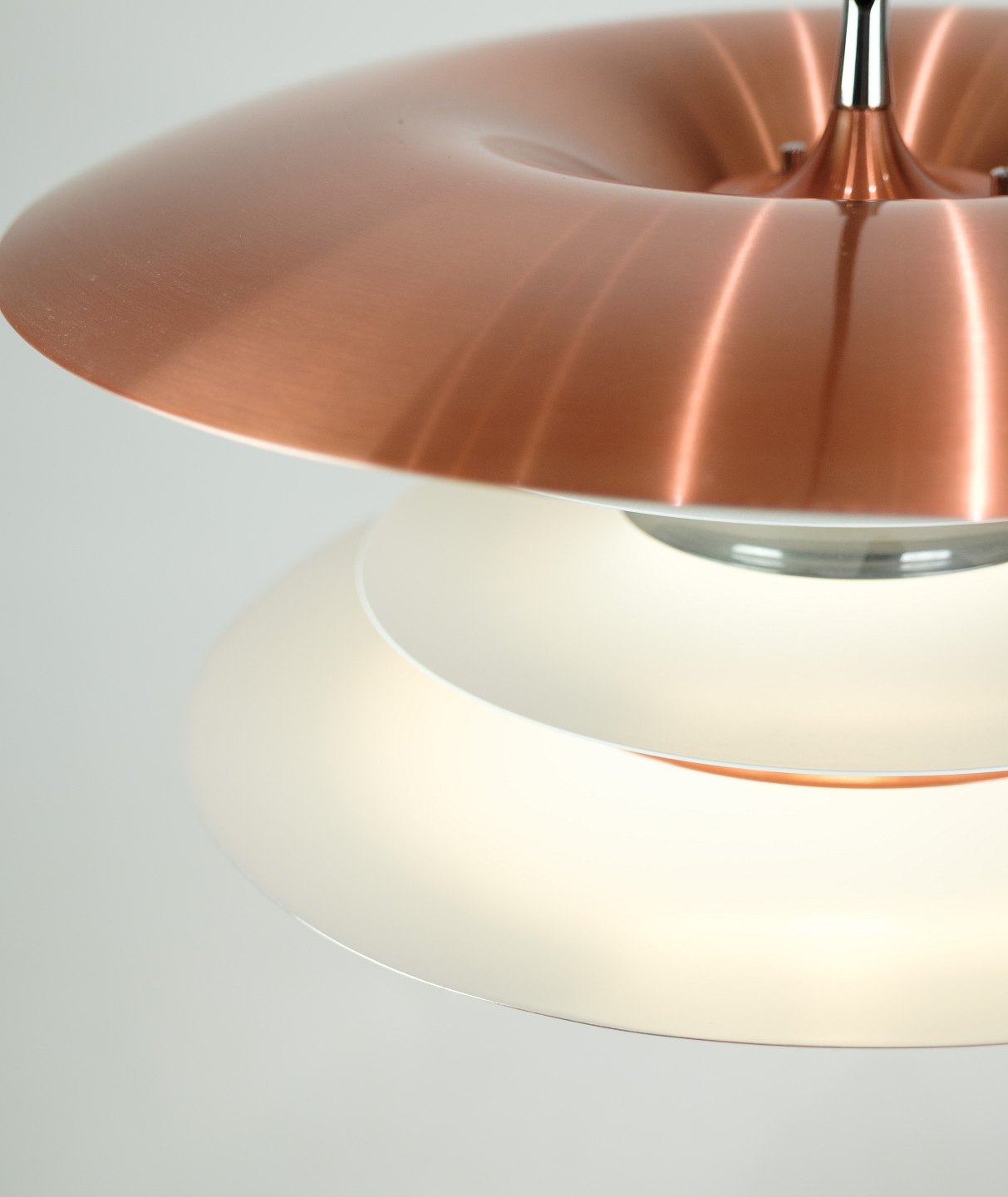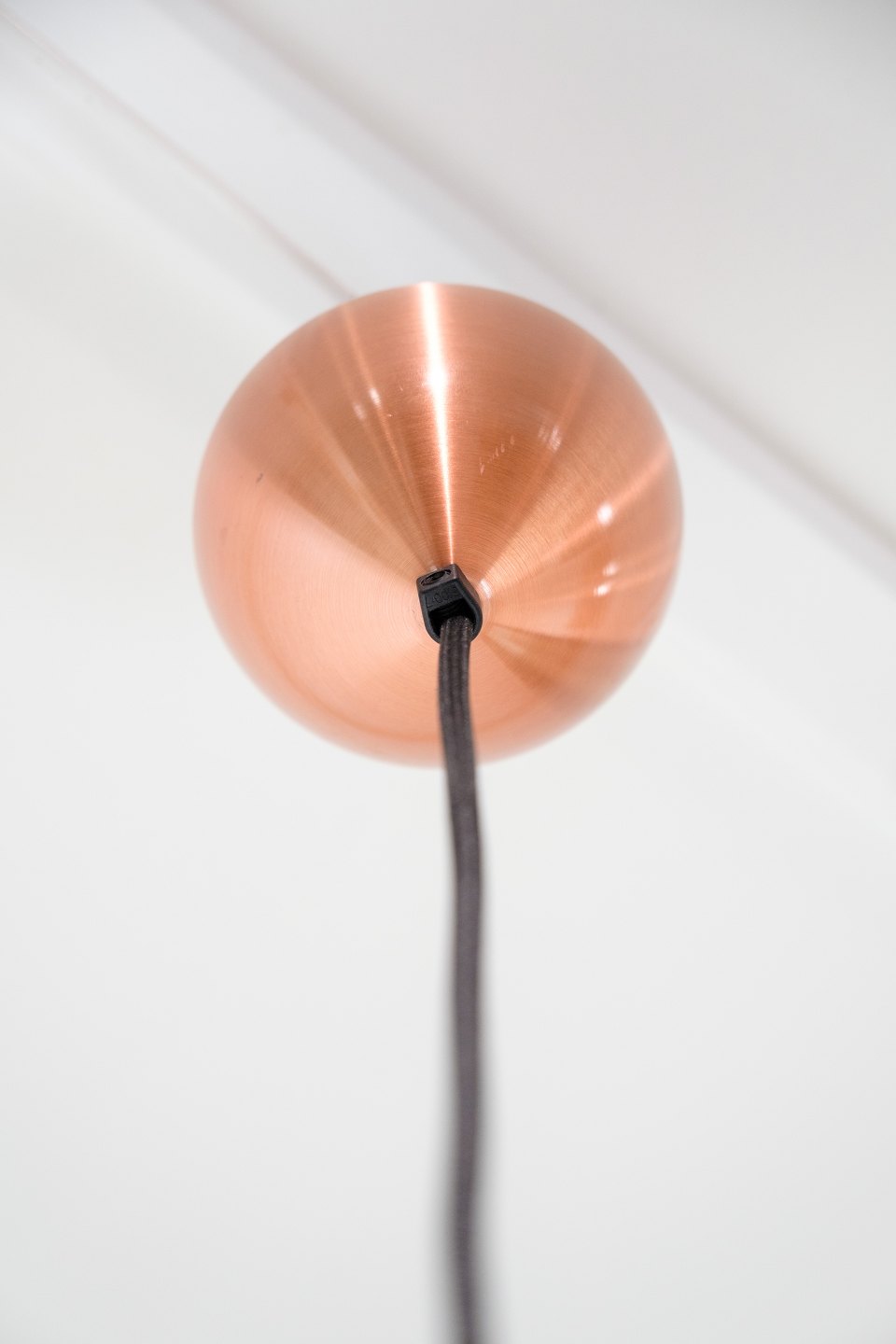 The Diablo lamp, designed by Joakim Fihn and produced in Varberg Sweden with copper shades. The lamp uses a compatible bulb and has energy class a - E.