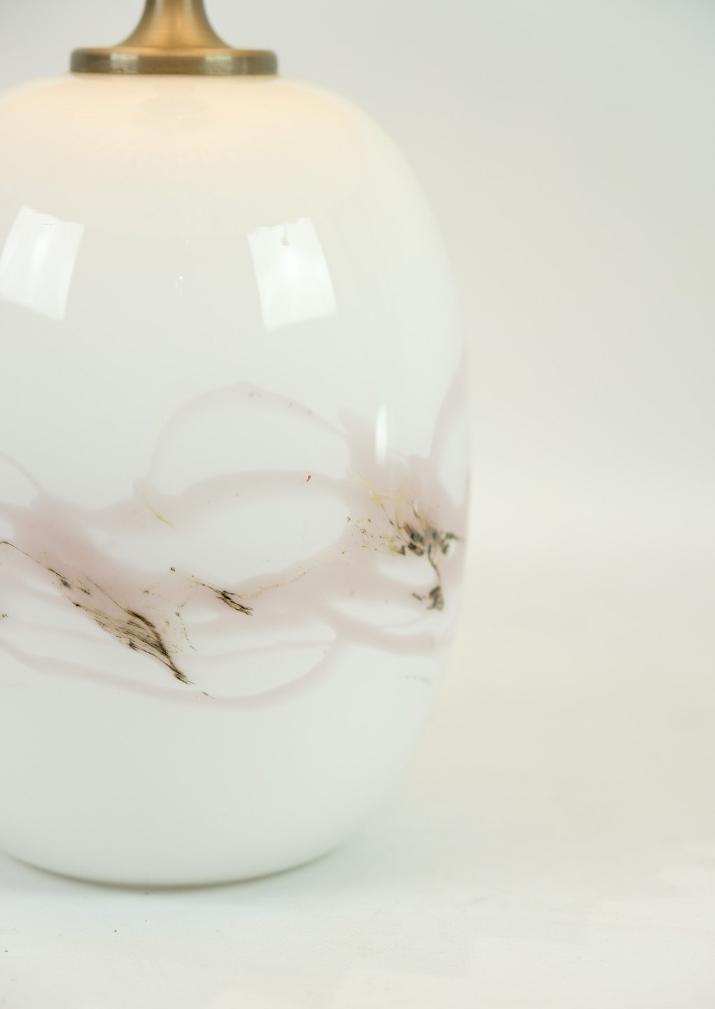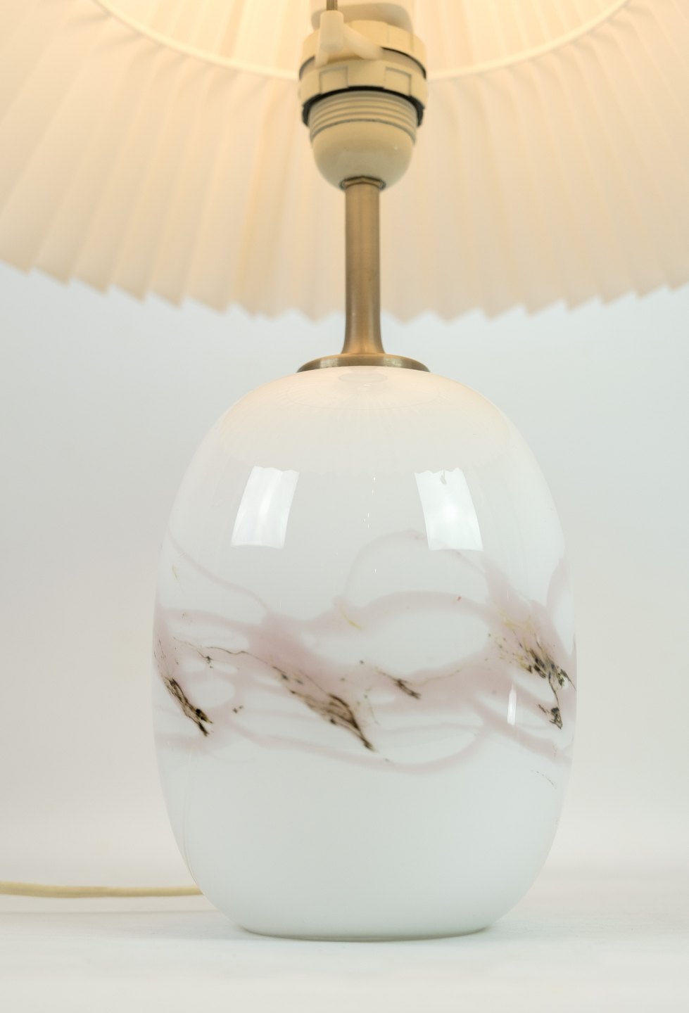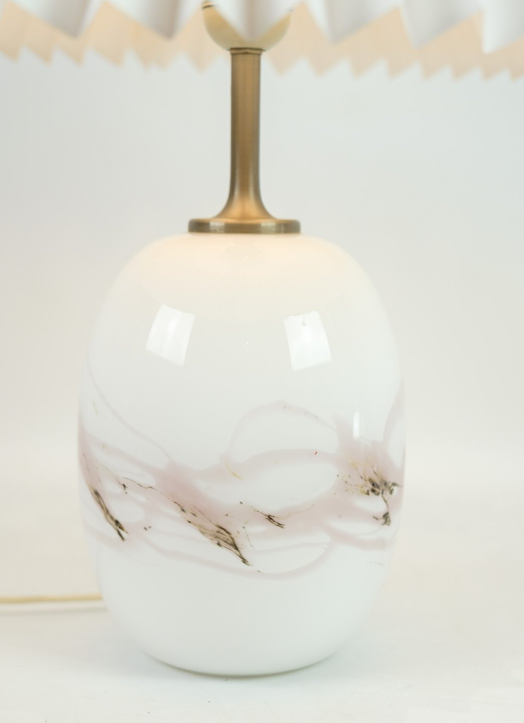 Table lamp, model Sakura, designed by Michael Bang with white opal glass with pink decoration.