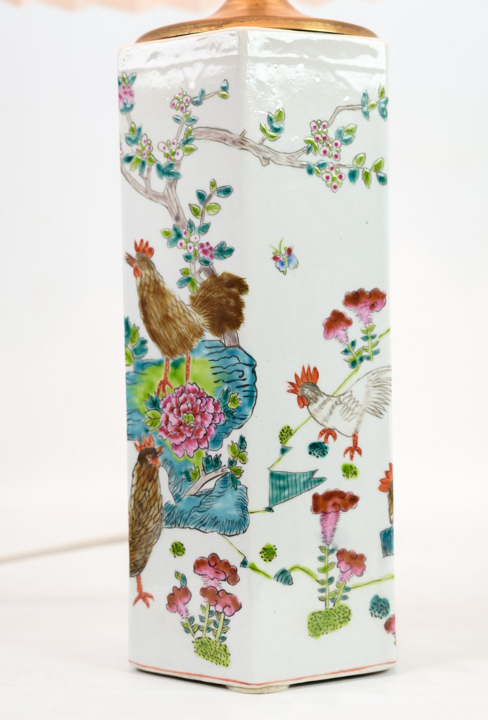 SoldA few of Chinese table lamps in porcelain with motifs of nature from the 1920s. Stands in fine used condition with a similar white screen.