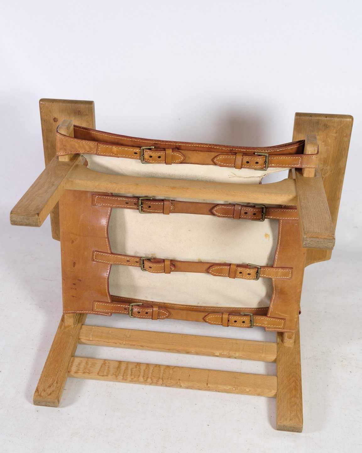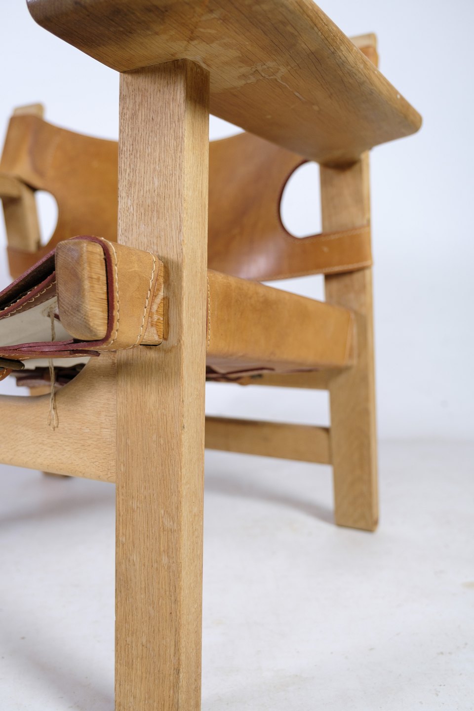 The Spanish chair, model BM2226, oak wood & patinated leather, designed by Børge Mogensen in 1958.