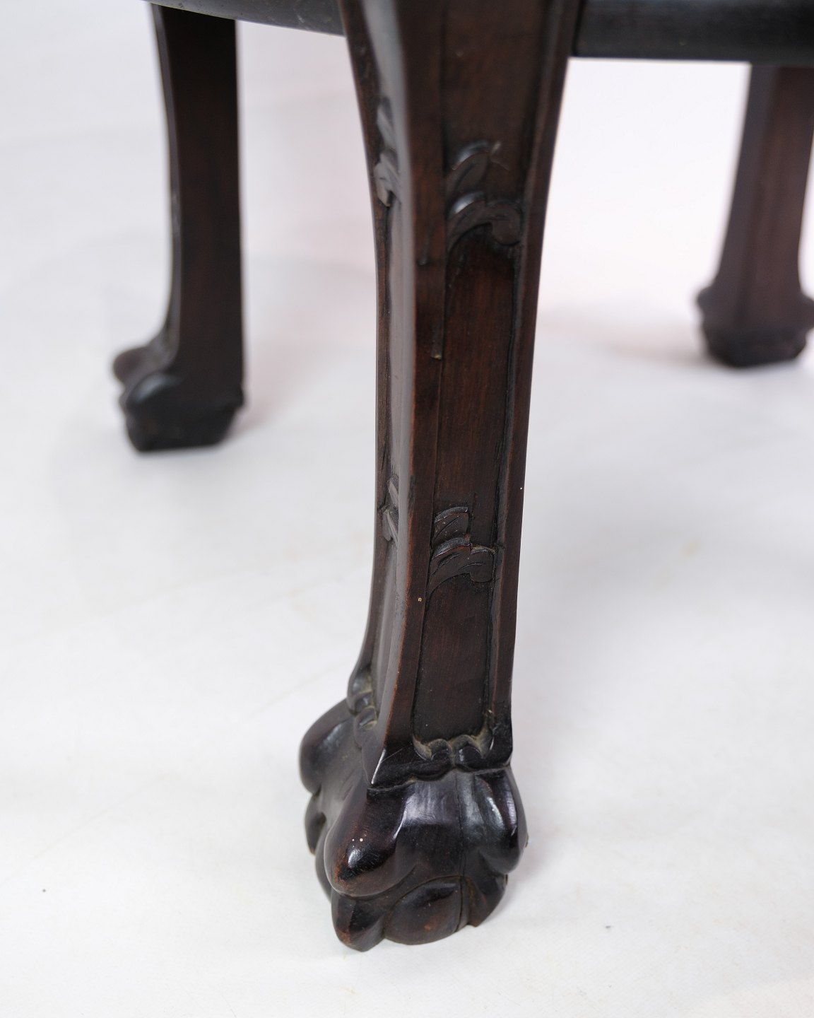 SoldSmall Chinese lamp / side table with fine detailed carvings of high quality with reddish marble top from around 1920s.