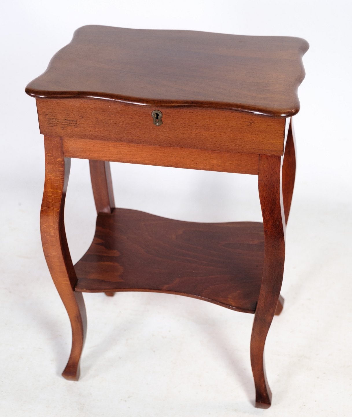 SoldSide table / Sewing table with folding table top with shelf below made in mahogany from around the 1880s.