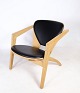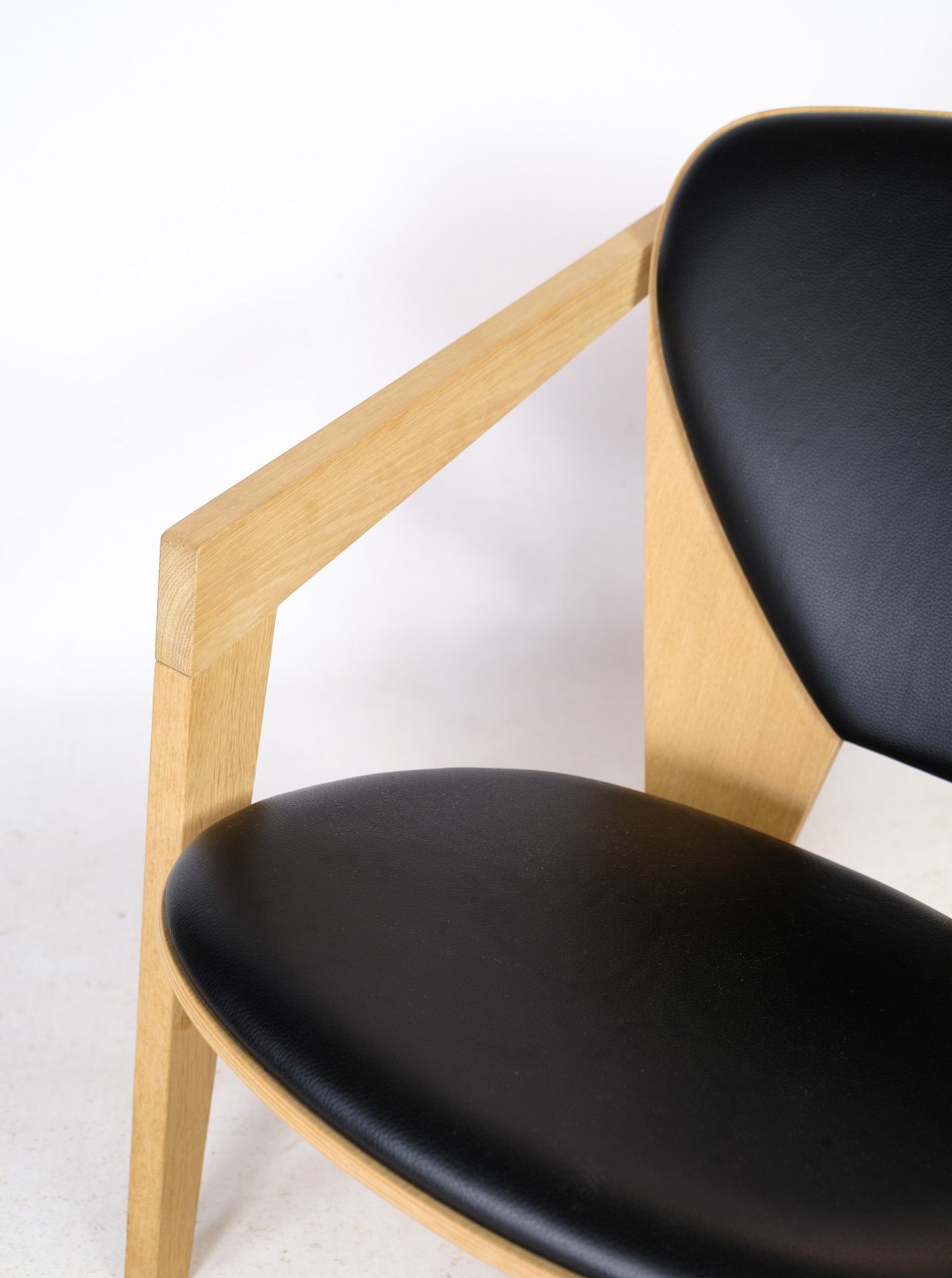 SoldOne of Wegner's designs is the GE 460 armchair, which was created in 1977. The chair is made of soap treated oak wood and has a seat and backrest upholstered in black leather, which gives it an exclusive and elegant feel. The chair is produced and branded by Getama, a recognized Danish furniture production company.
