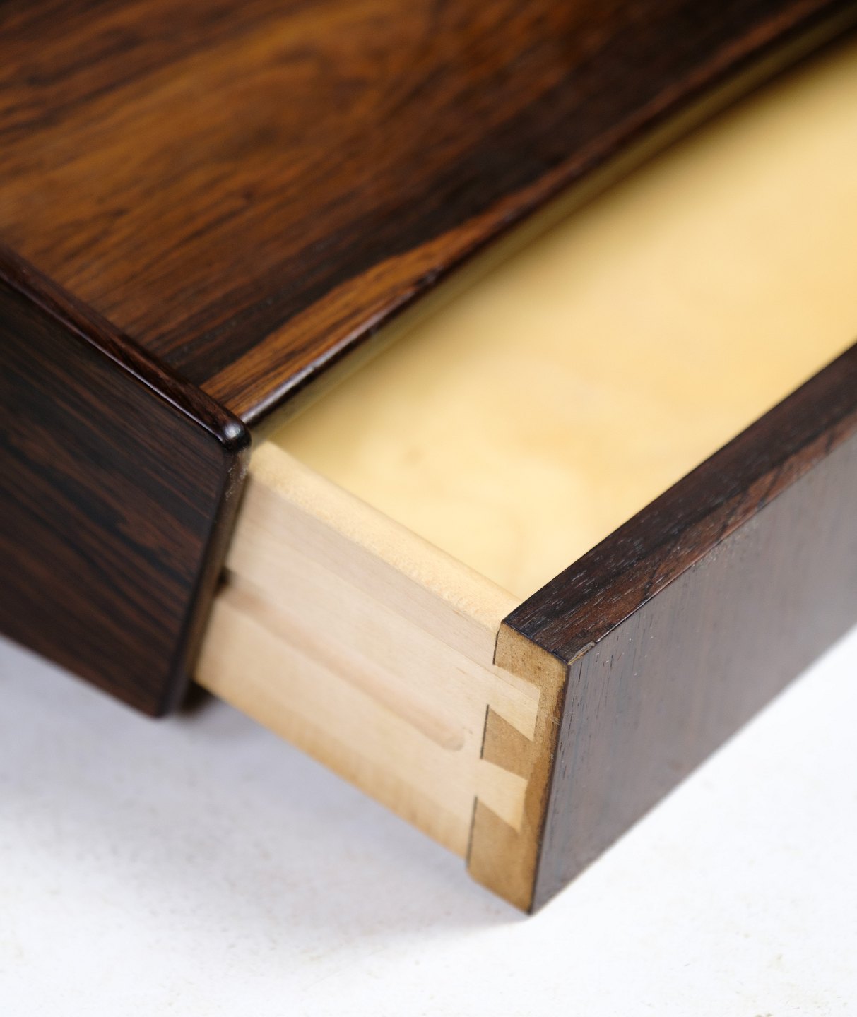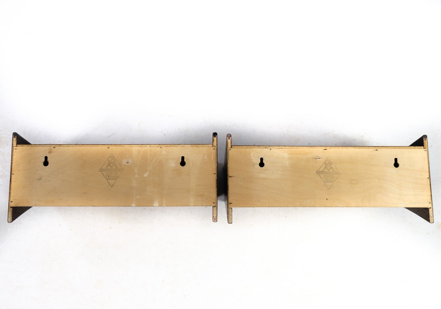 SoldA set of wall-hung bedside tables in rosewood with drawers appears with stamps of Ølholm Møbelfabrik, Horsens from around the 1960s.