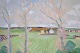 Painting on wooden board in gold frame of agriculture in green colors from around the 1930s.